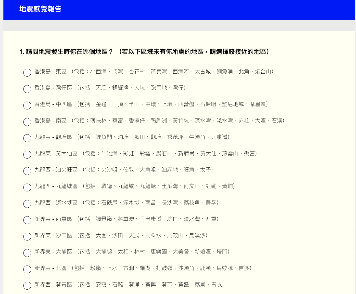 天文台設「報告香港有感地震」專頁