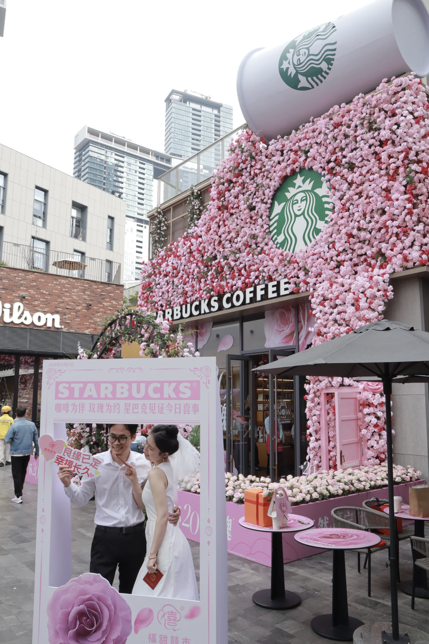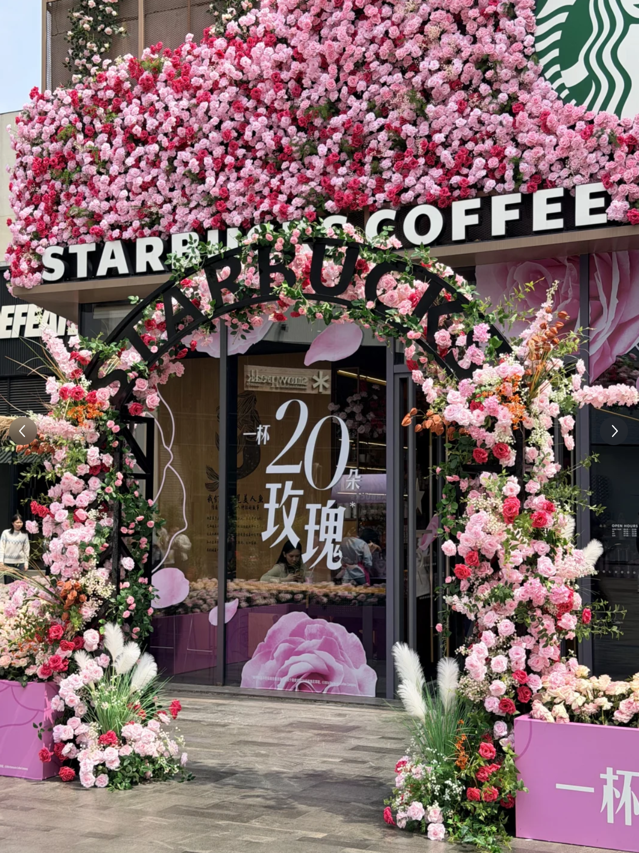 位於福田區深業上城的星巴克旗艦店最近換上搶眼裝飾,是全國首間以「玫瑰」為設計主題的分店,開業以來已成為小紅書及Instagram的熱門打卡勝地。