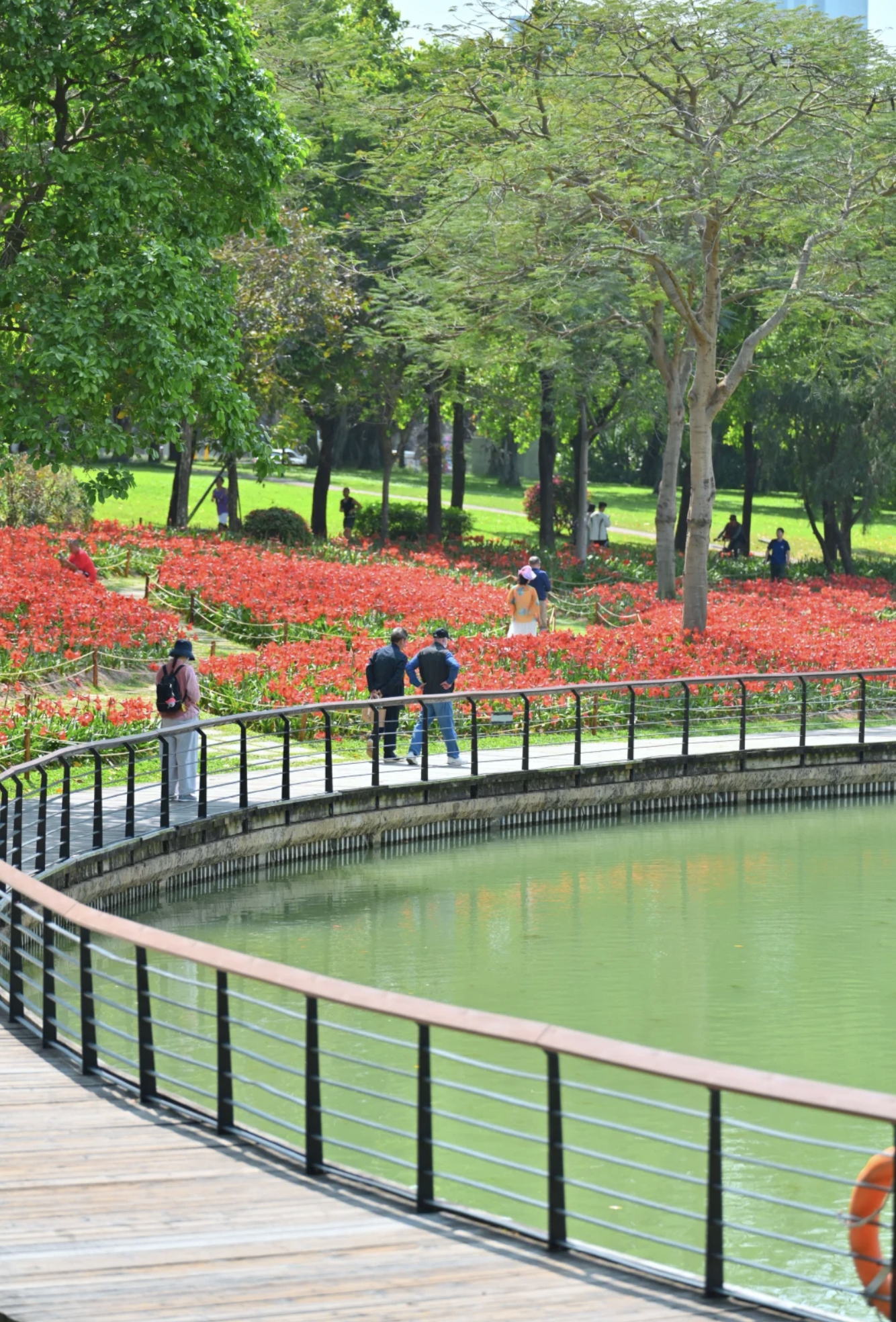 - 福田河生態段:河道兩旁蘆葦與朱頂紅相映,可捕捉自然生態與花卉結合的畫面。
