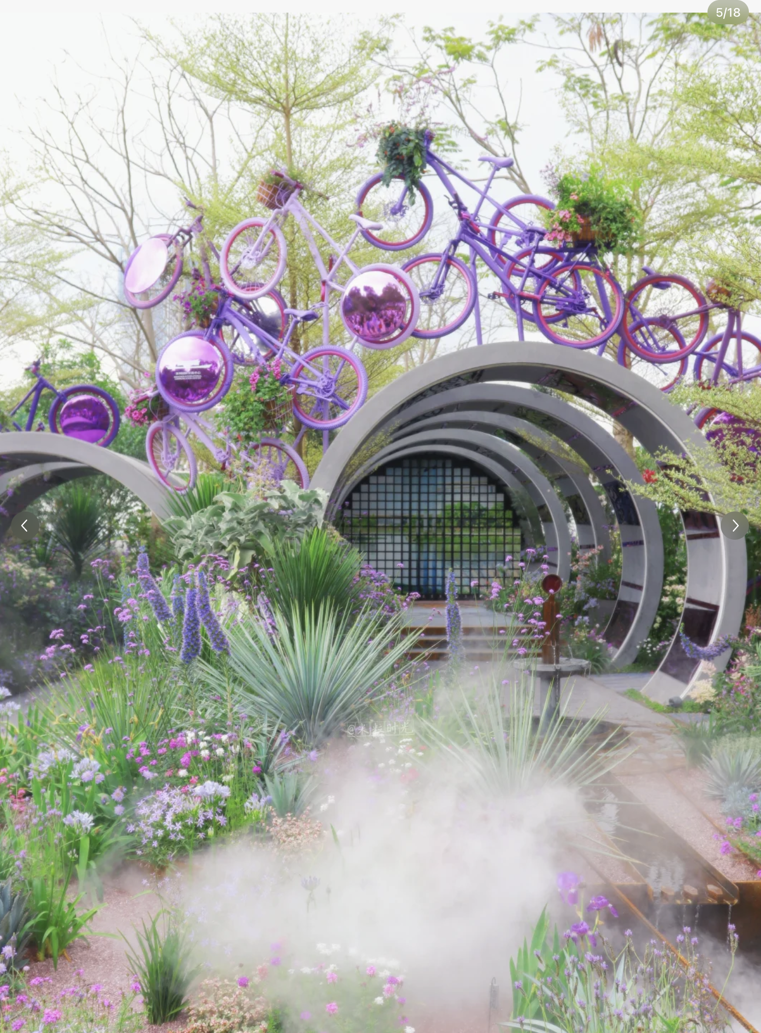 - 自行車花園:紫色自行車組合搭配大量鮮花裝飾,極具特色