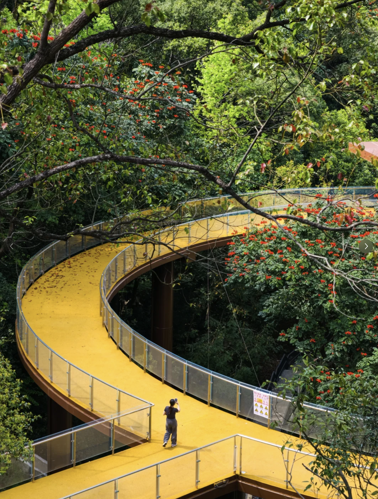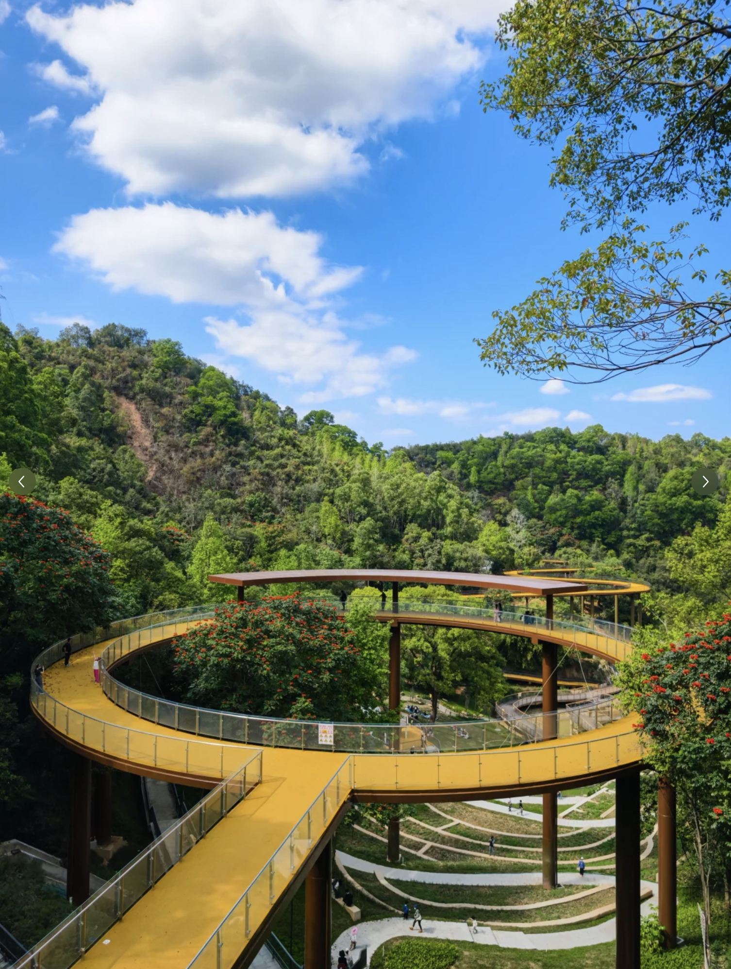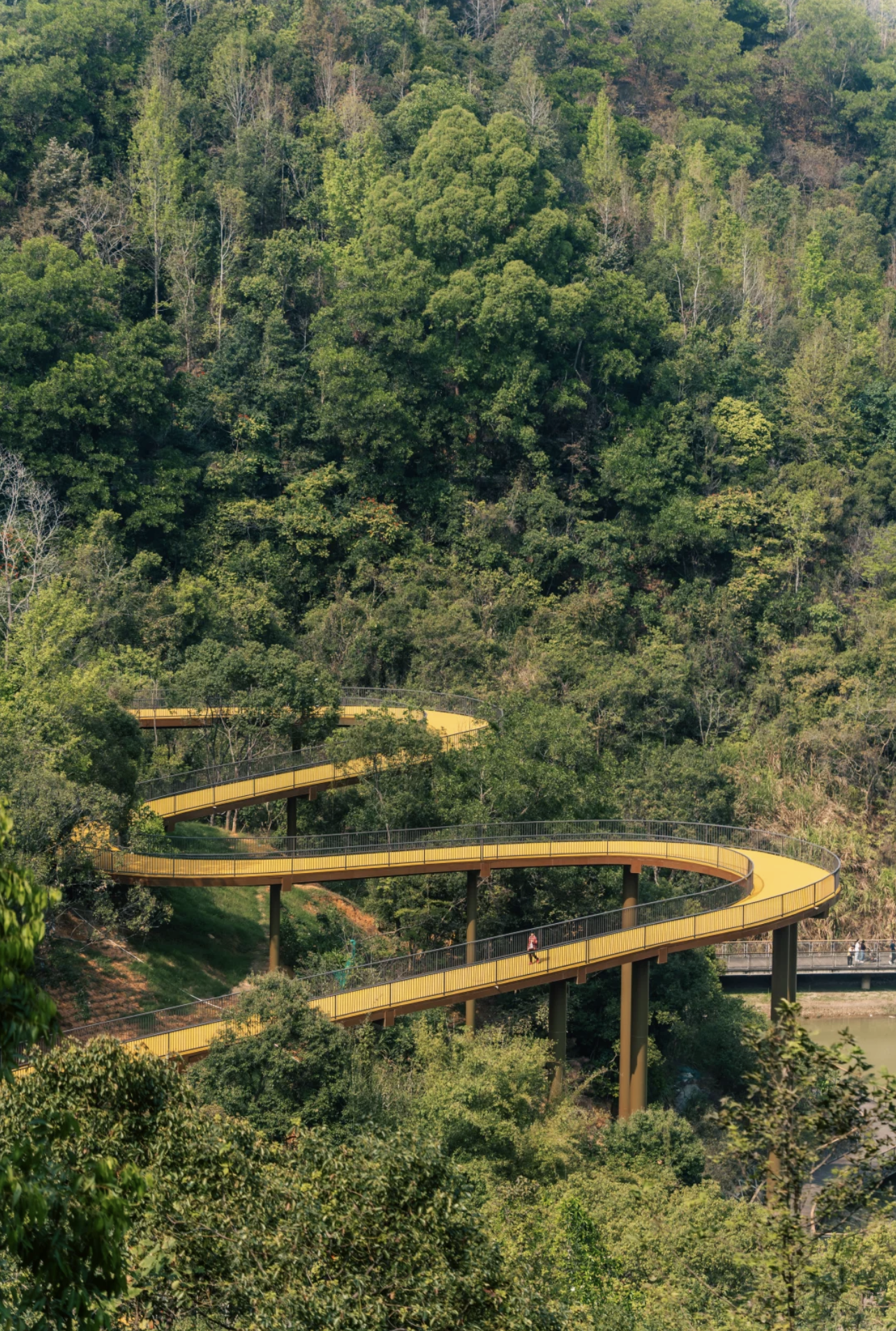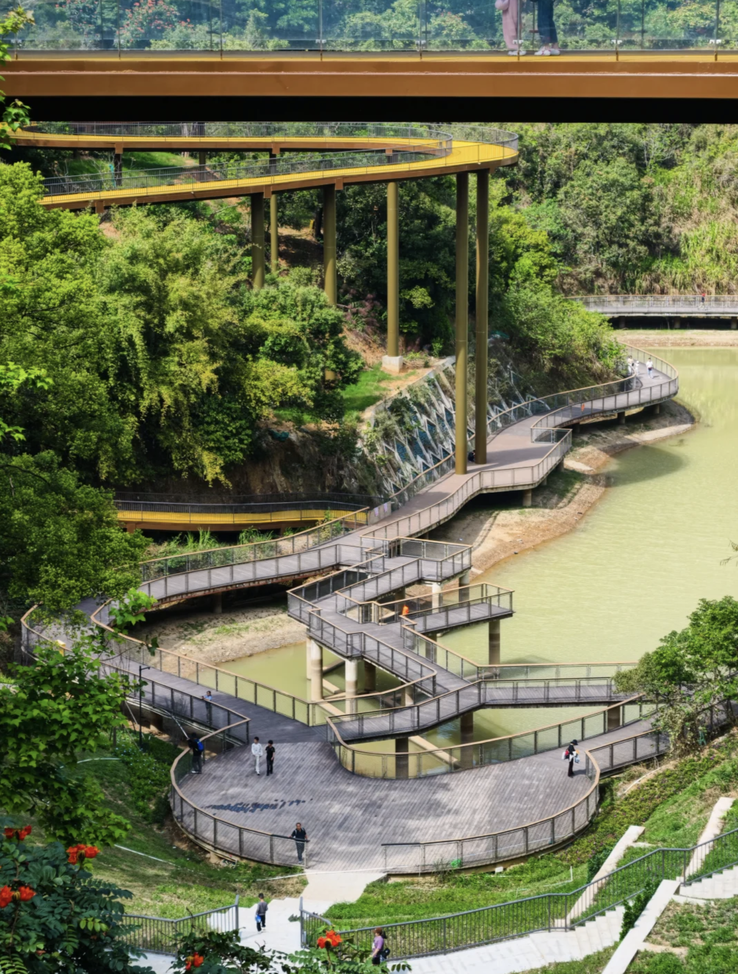 公園最標誌性的設施,非這條架空棧道莫屬。棧道以鋼結構搭建,蜿蜒穿梭於原始山林之間,離地數米至十數米不等。走在上面,腳下是婆娑樹影,身旁是翠綠林蔭,視野開揚,可以遠眺龍崗城景。步道平坦易行,適合一家大小慢慢散步,感受被大自然包圍的療癒感。