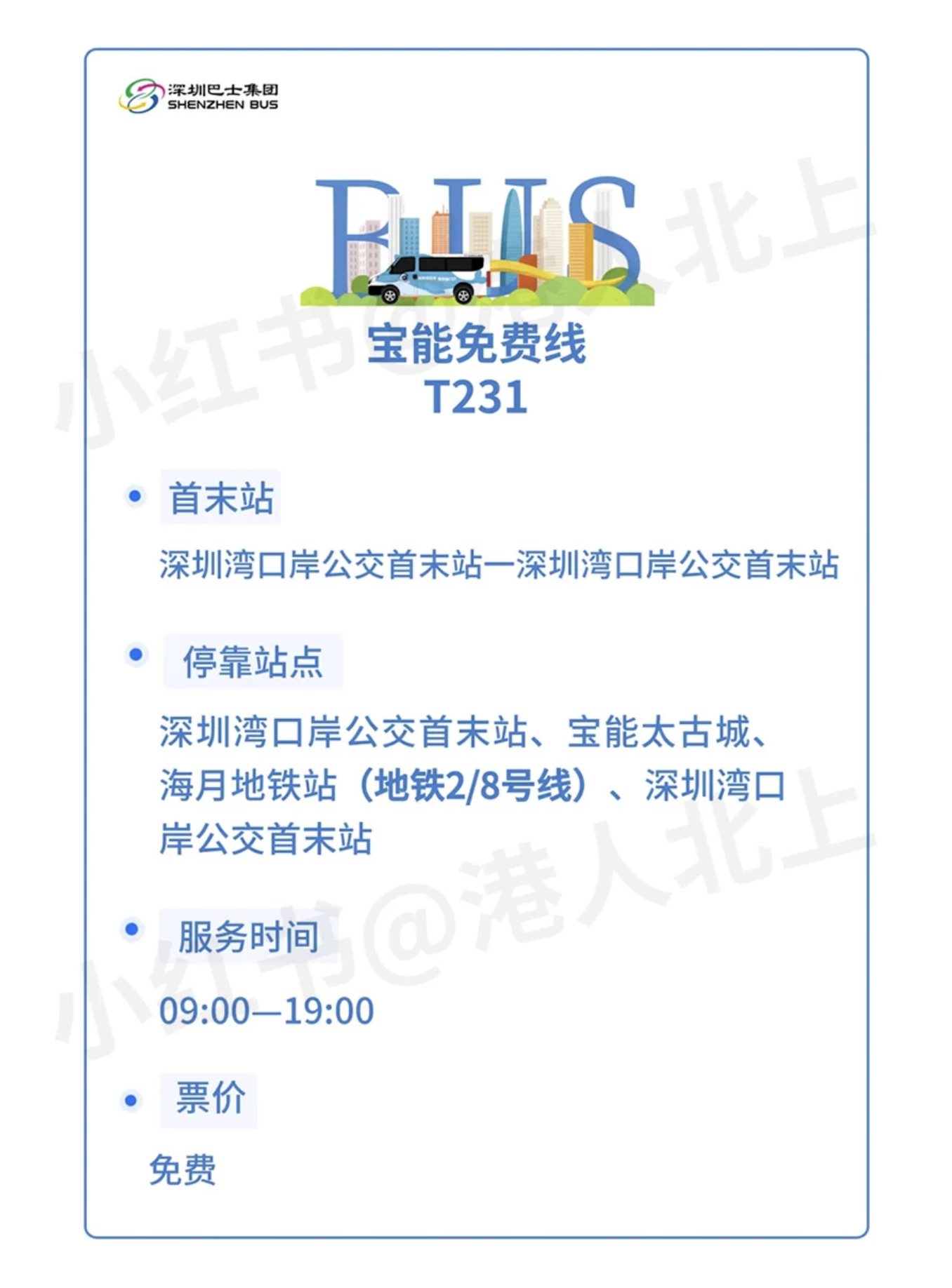 深圳灣寶能免費巴士線T231 連接口岸/商圈/地鐵