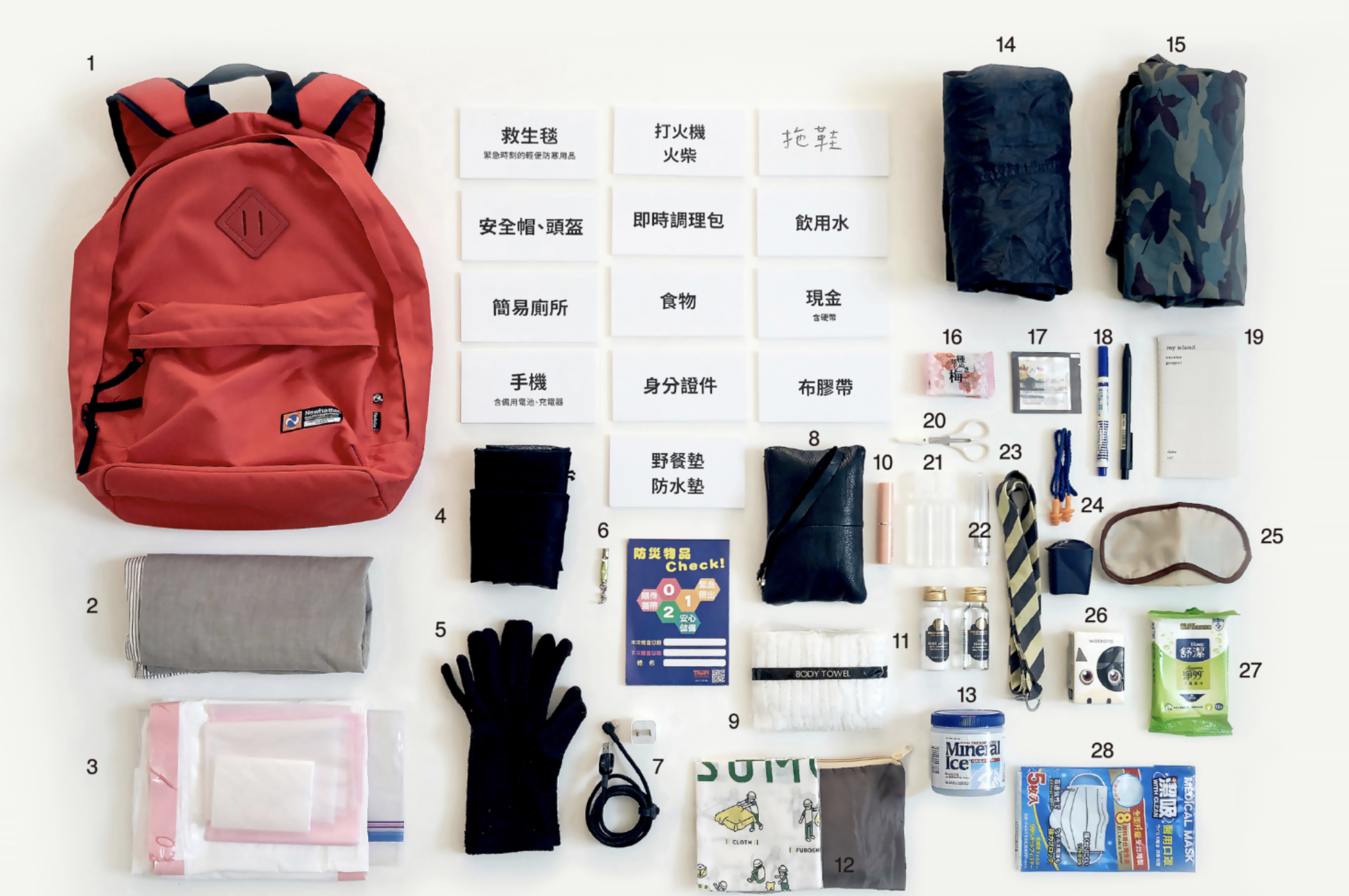 - 入住酒店貼士:入住時留意逃生出口位置及路線、於酒店房當眼處放置防災包、留意房內手電筒位置(多數在床頭櫃位置)、入睡前確保手機音量調至最高(勿調校靜音)確保入睡後能聽到地震警報、床邊放置拖鞋或厚底鞋在災難發生時方便逃生及保護腳部