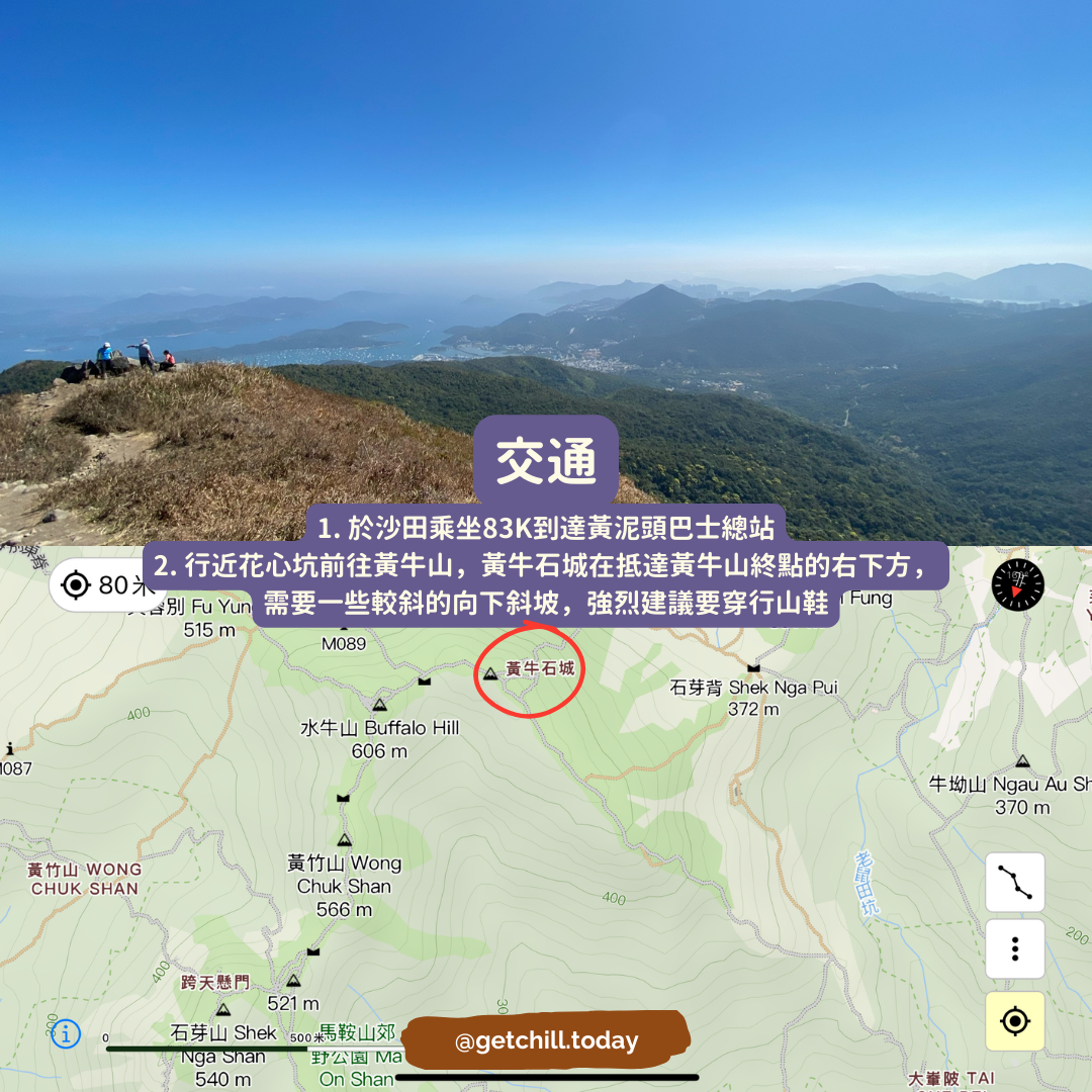 2. 行近花心坑前往黃牛山,黃牛石城在抵達黃牛山終點的右下方,
