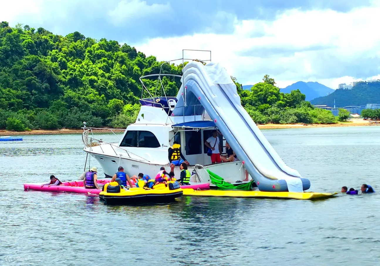方案已包含漁排垂釣體驗、馬屎洲連島沙州登岸遊覽及打卡,以及遊艇海上設施玩樂,包括遊艇滑梯、海上泳池、海上浮毯、獨木舟、直立板等。將於大埔三門仔聯益碼頭快艇接送至漁排。每位客人包一支水及一罐飲品。