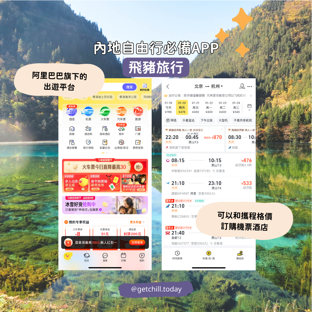 5. 飛豬旅行:阿里巴巴旗下的出遊平台,可以和攜程格價訂購機票酒店