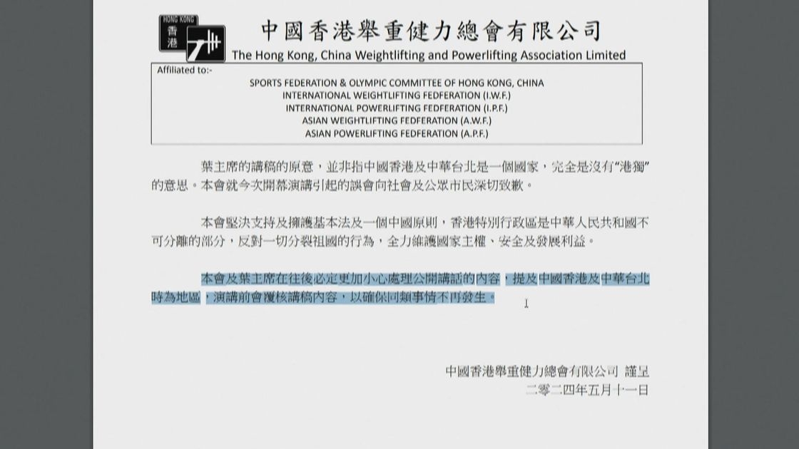 港協暨奧委會回應,指向總會了解後,初步認同事件是一時口誤,並再次提醒各體育總會在參與交流活動時,對於國家主權和「一國兩制」的論述絕對不能含糊。