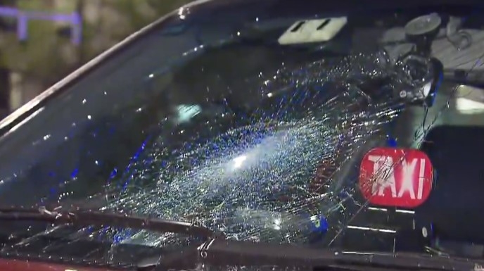 的士車頭擋風玻璃碎裂。男途人頭部、手、胸及盆骨受傷送院。