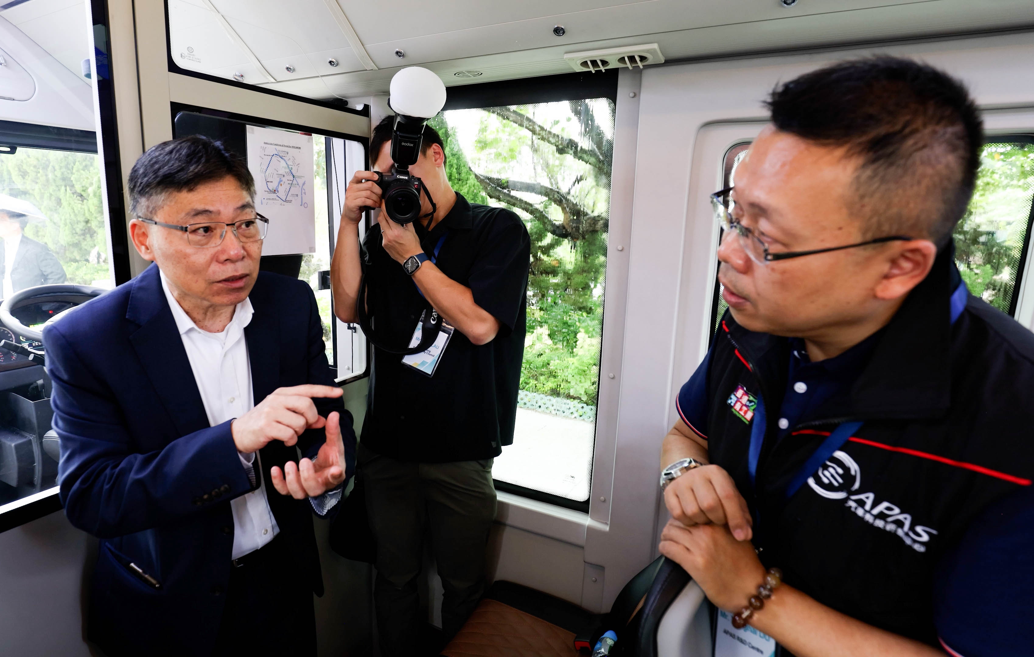 林世雄早前亦與運輸及物流局團隊,試坐於錦綉花園內試行、由生產力促進局轄下的汽車科技研發中心研發及由冠忠巴士集團有限公司負責營運的5G自動駕駛穿梭小巴。
