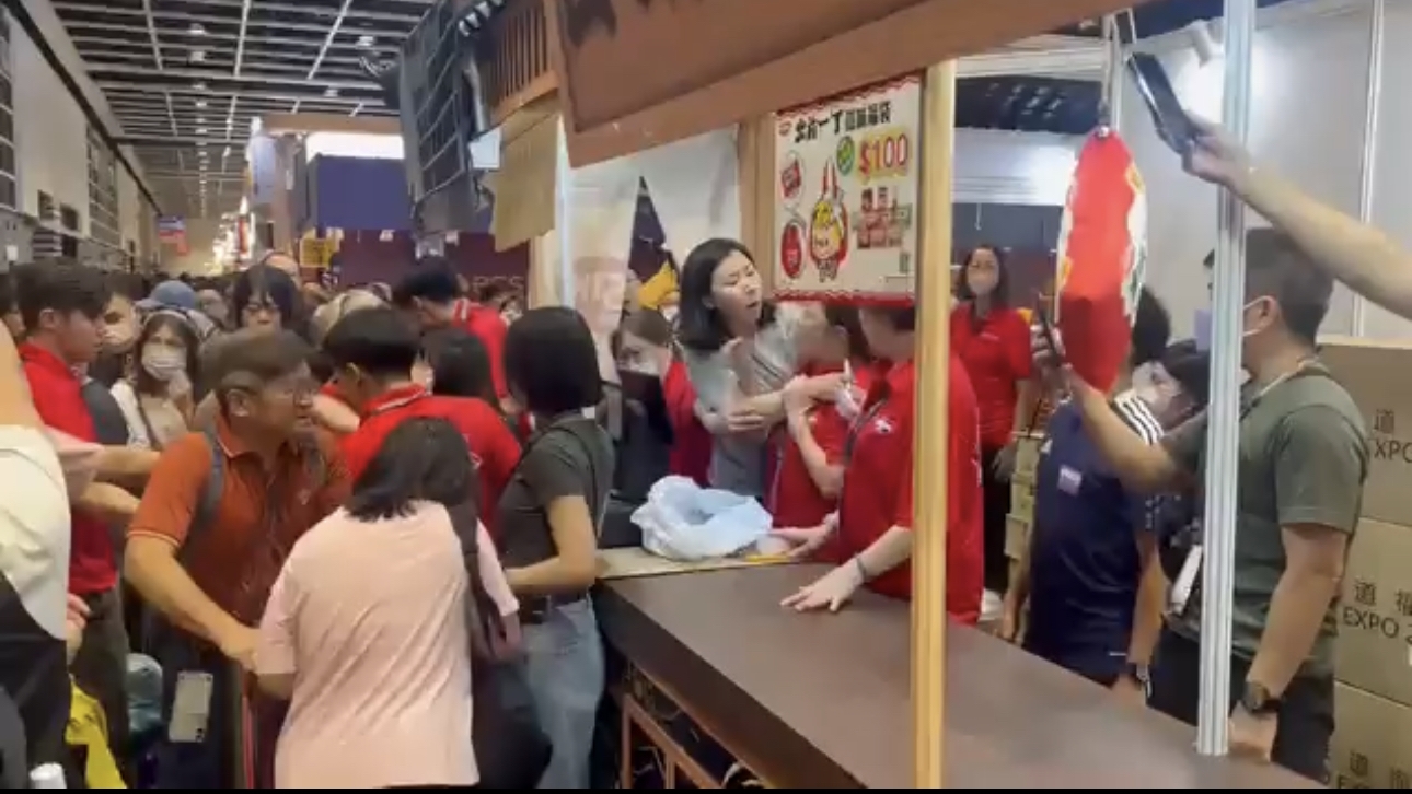其中有參展商推出的即食麵及杯麵福袋更成為熱搶目標,有排隊搶購的市民疑因購物爭拗,與攤位工作人員有肢體磨擦,有人更懷疑動手打拍片者,場面一片混亂。