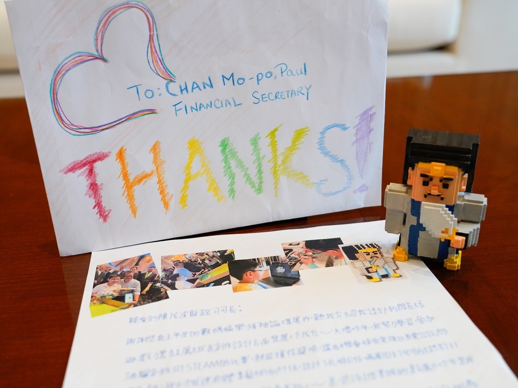 他說,近日出席了數碼港舉辦的「數碼娛樂領袖論壇」,重遇去年同一場合見到的一名小學生,指對於對創科知識的追求、對興趣的熱愛和堅持,讓他倍覺感動和鼓舞。