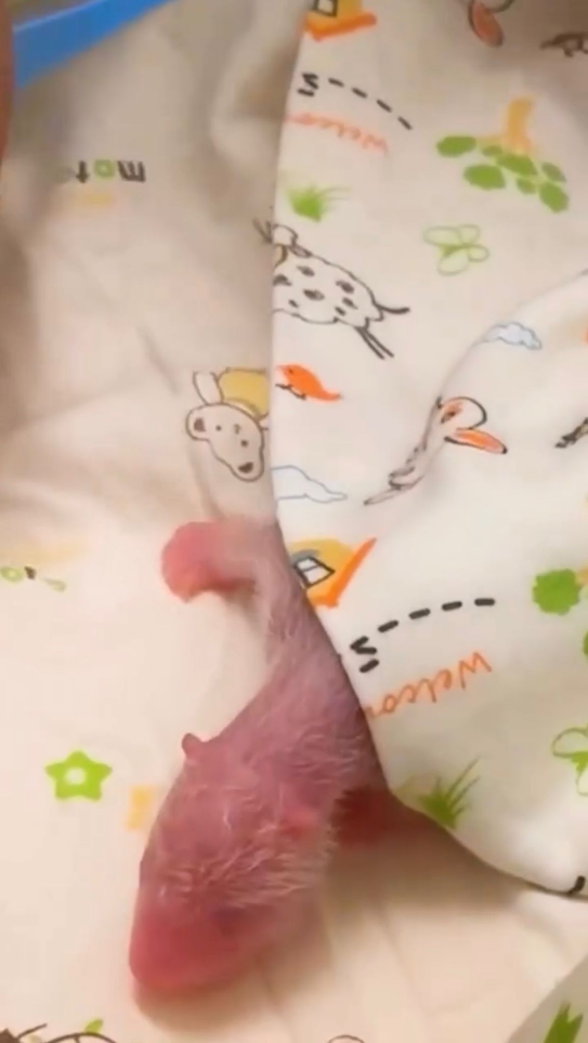 片中可見是小寶寶們的保溫箱內,見寶寶在被子下不停郁動,看來十分活躍,雖然未見牠真身,但卻聽到牠那清脆響亮的叫聲。