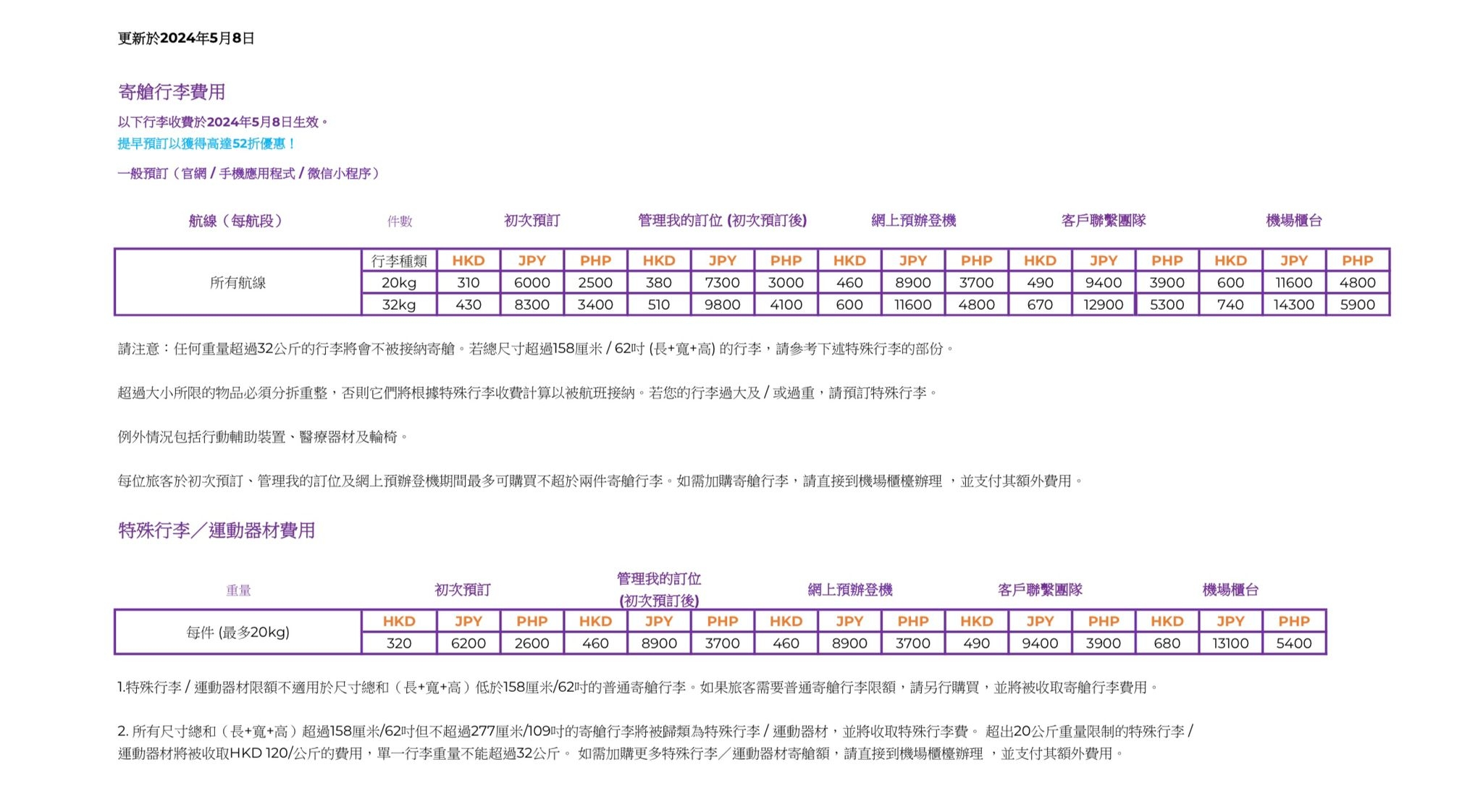 香港快運(HK Express)今年5月起更改了機票票價及攜帶行李的規定,某些票價種類並不包括登機行李。