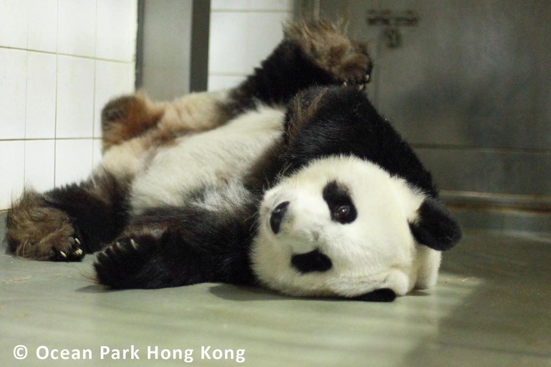 海洋公園今日再上載大熊貓寶寶最新照片,配文:「有其母必有其子!Pose都一模一樣」,照片可見「細佬」的睡姿與媽媽盈盈似到十足。