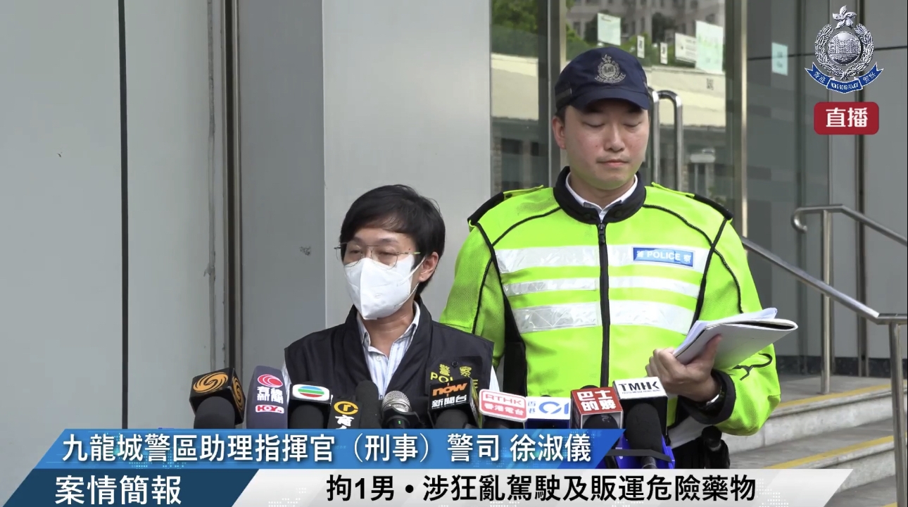 警員其後檢獲約60包懷疑可卡因,潘男亦未能出示有效的駕駛執照。經初步調查,潘男涉嫌狂亂駕駛、襲警、販毒、無牌駕駛及駕駛時沒有第三者保險被捕,現正被扣留調查。案件交由九龍城警區重案組第一隊跟進。
