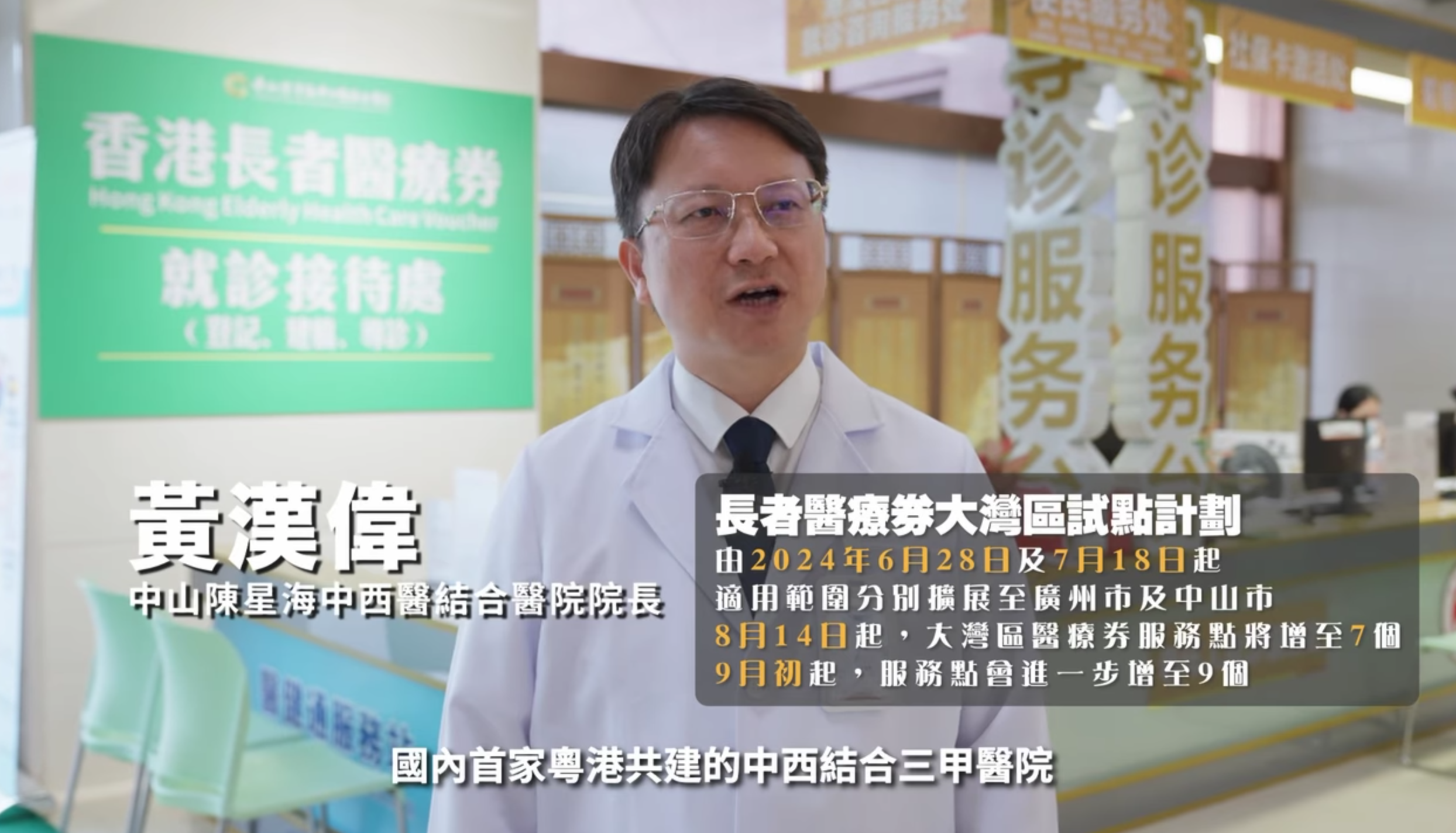 而影片亦展示長者醫療券大灣區試點進展,定居中山的退休長者陳潔瑜指,她可在中山陳星海醫院使用醫療券,不再需花600元打車到深圳醫院,免去長途跋涉。