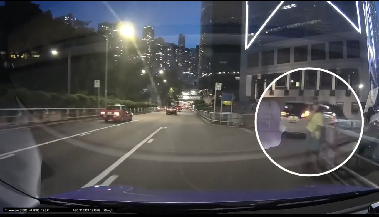 有車主在社交媒體車cam群組上載一段影片,10秒鐘的影片中可見車主在紅棉道一帶時,突然有一名女途人站在路邊,她似乎想等候機會橫過馬路,十分危險。車主和乘客都十分驚訝,「咁犀利嘅佢﹖呢個位點解會企到嘅?」![]()