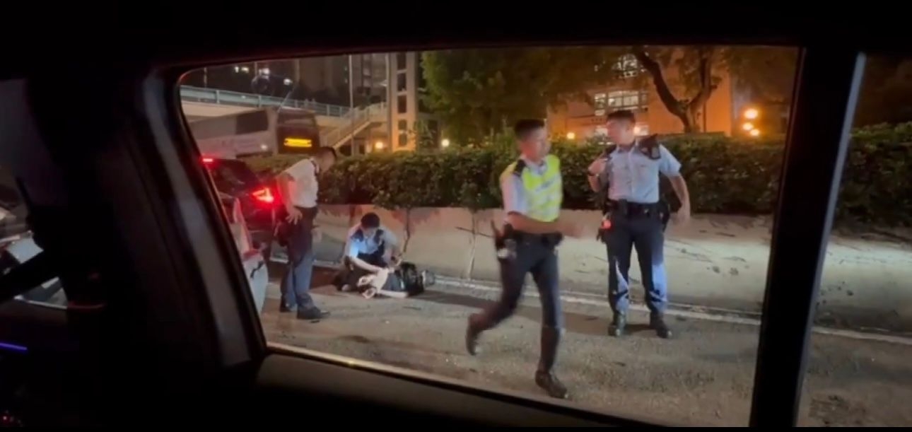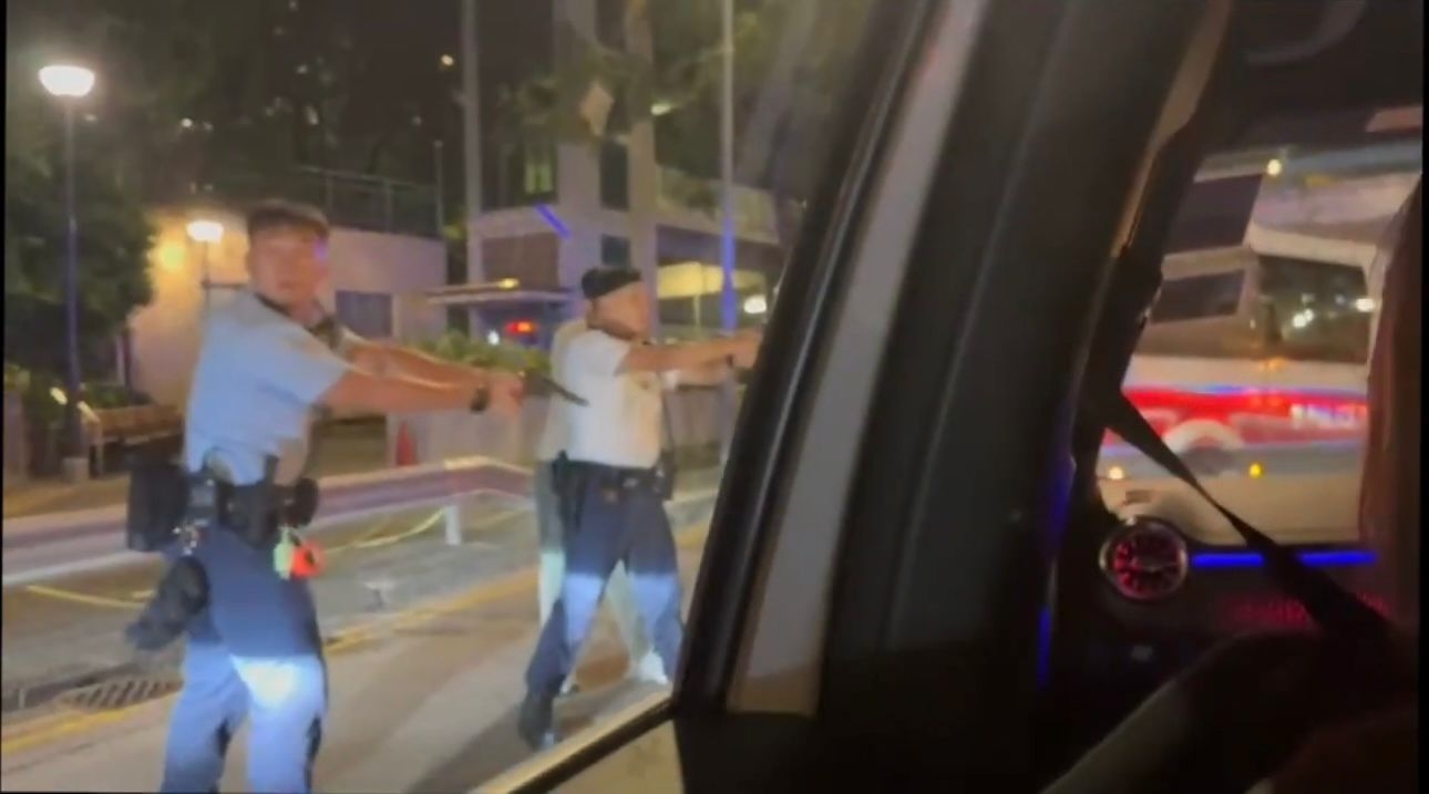 影片可見最少有4名警員擎槍指向疑犯車輛,及有警員用警棍扑向疑犯車輛的窗,現場氣氛極度緊張。及後見警員將疑犯拉落車並將他制服及押在路上,押著疑犯的警員對著對講機匯報︰「捉到一名男士,畀我哋控制咗over!」最後見警員將被制服的疑犯拉起。