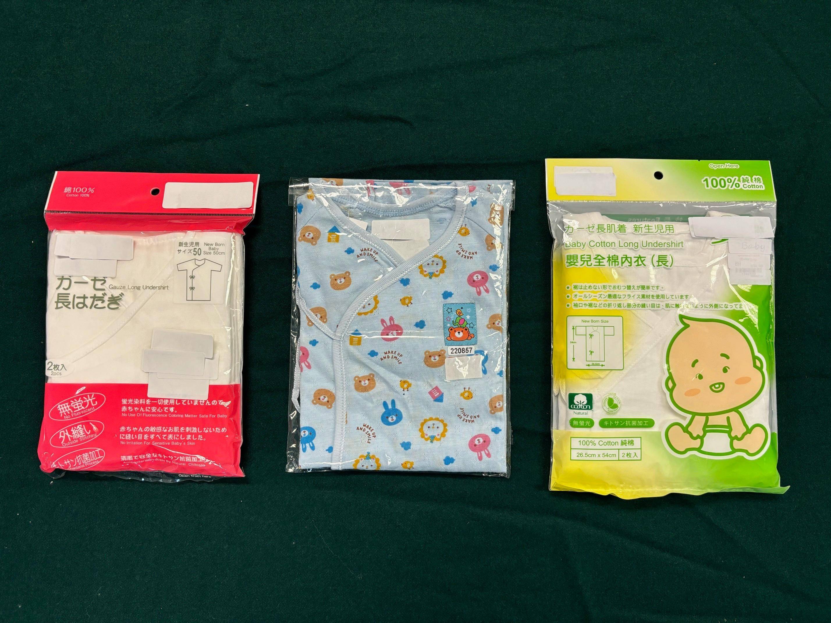 海關早前接獲相關機構轉介,指市面上有三款懷疑不安全的嬰兒衣服出售。海關人員隨即在各區進行巡查,並試購該三款產品送往化驗所作安全測試。