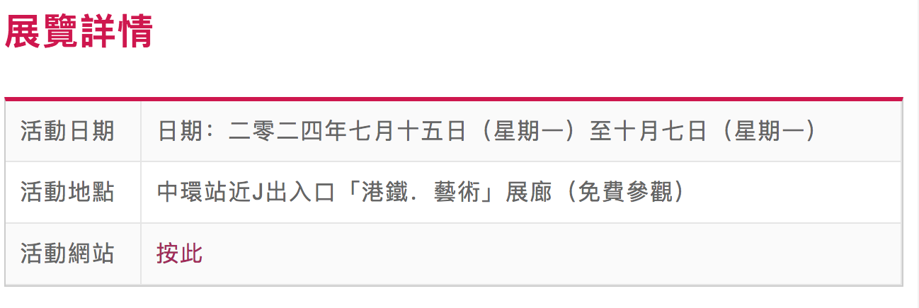 攝影展同時展出《每個時刻 都是回憶的起點》相片徵集活動之優秀作品,從普羅大眾視角發掘更多鐵道上的邂逅與相遇。三部曲攝影作品有如三條平行路軌,形成「川」字匯聚成流,讓途經中環站的乘客亦置身其中。