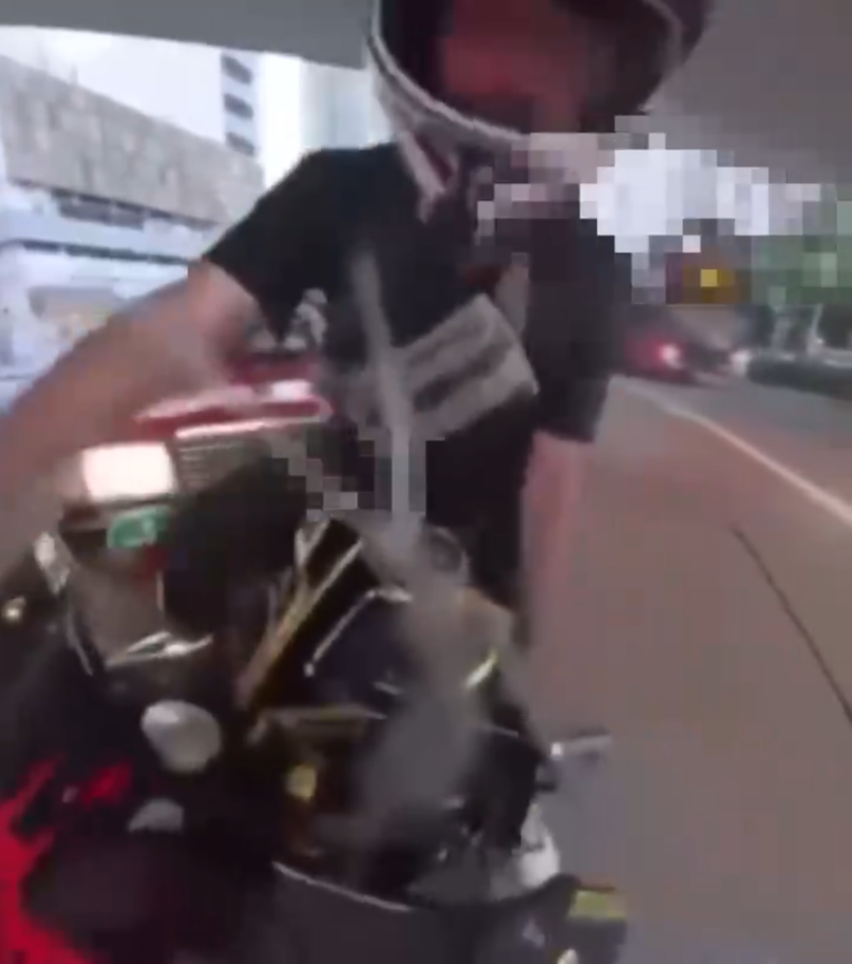 網上在周一 (9月16日) 廣泛流傳一段視頻,一名「鐵騎士」沿大路慢駛,當駛至「停車」路標記時,一輛市區紅色的士突然從小路衝前撞到電單車的尾部,電單車隨即倒下司機則及時跳車,場面驚險,後來司機十分無奈地等候救援。![]()
