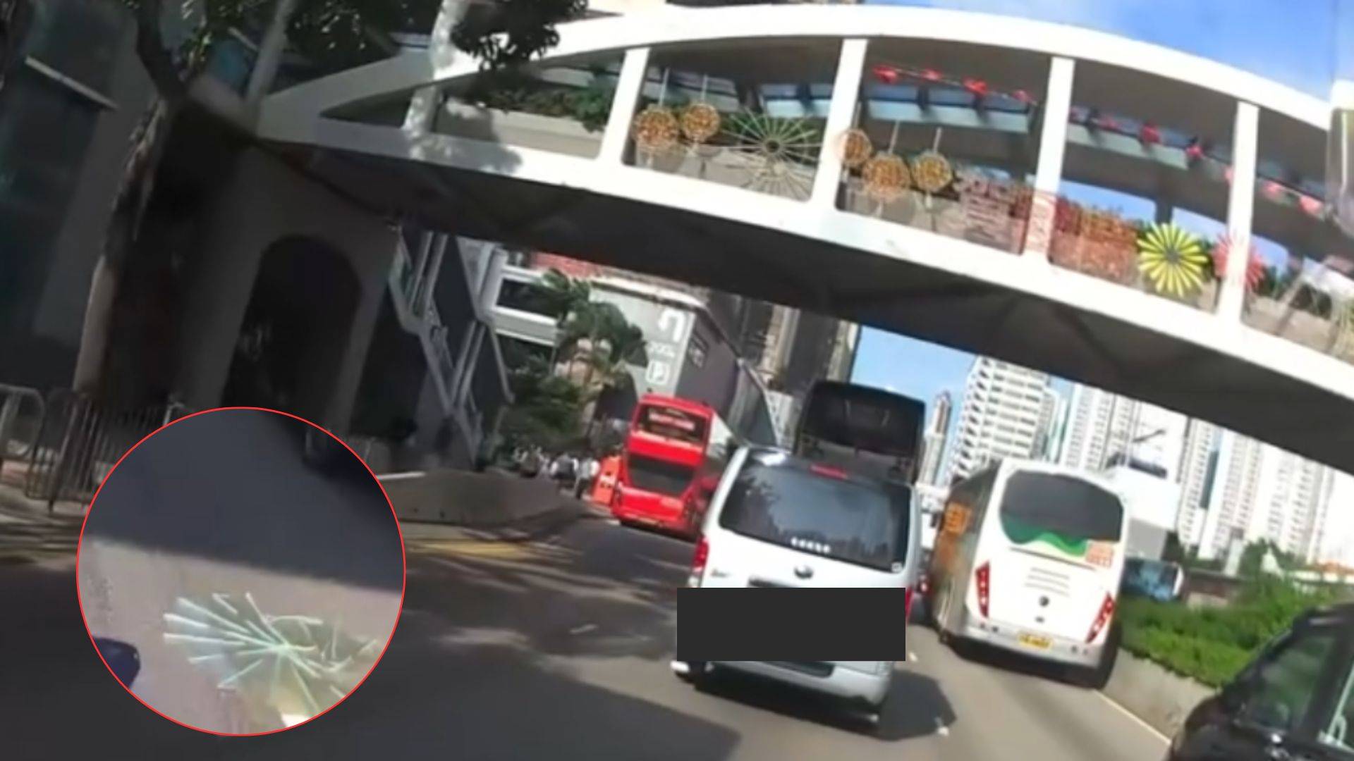 據視頻中所見,掉下的似乎是天橋上的裝飾物,如擲中車輛「可大可小」,嚴重者更可能引發交通事故。