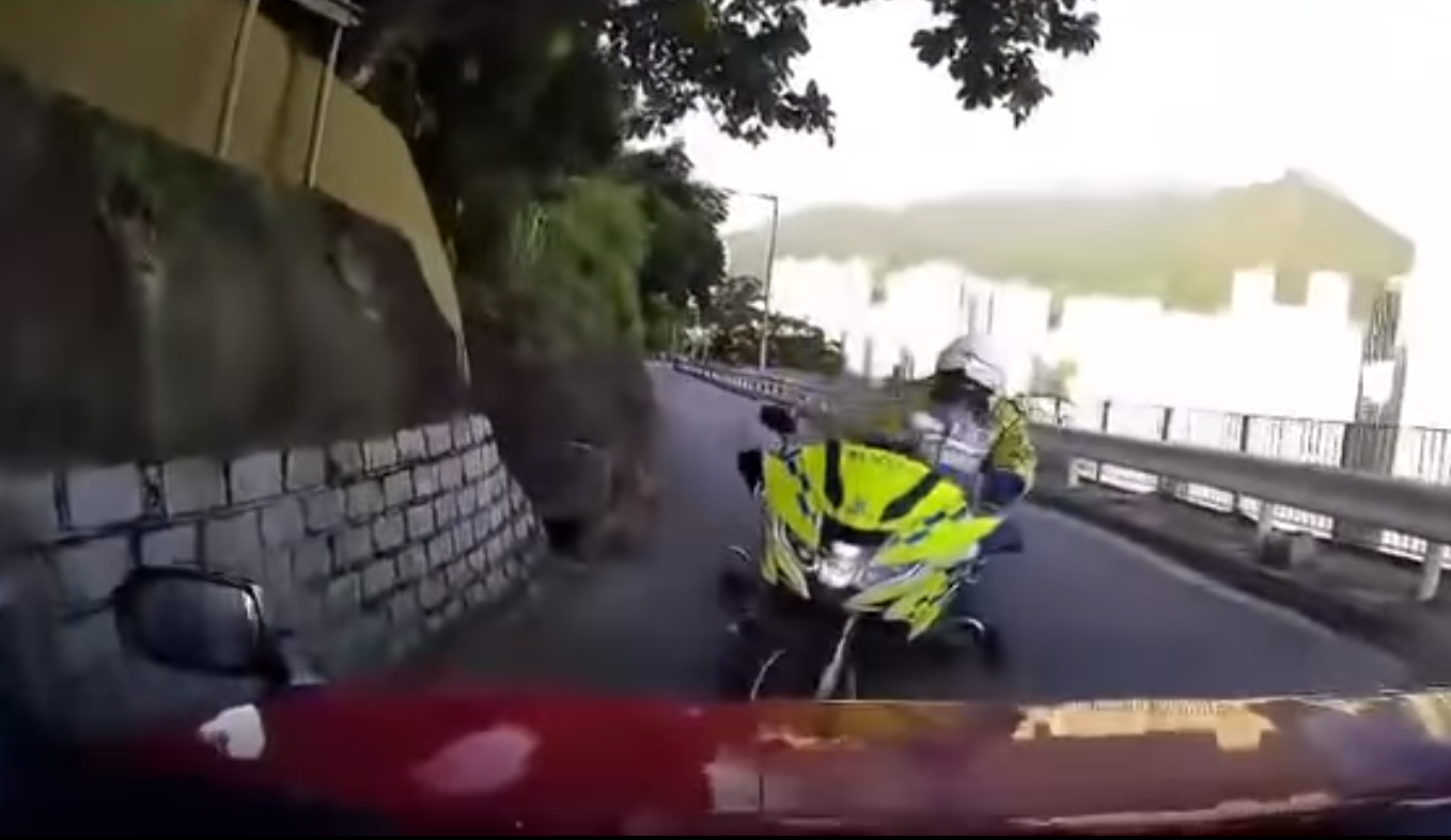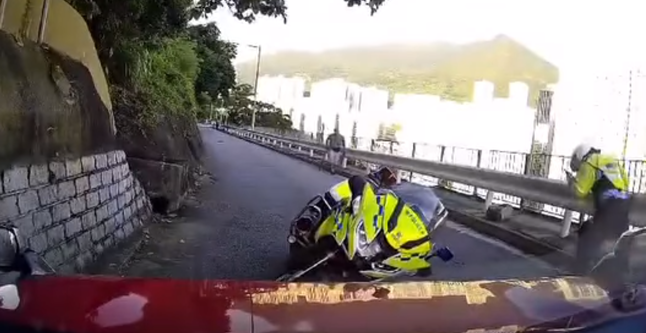 網上流傳一則全長約51秒的影片可見,一名的哥疑於柴灣哥連臣角靈灰閣一帶的山路行駛,期間司機在單程路急速向前。不料加速時,與對頭的一輛交警電單車相撞。