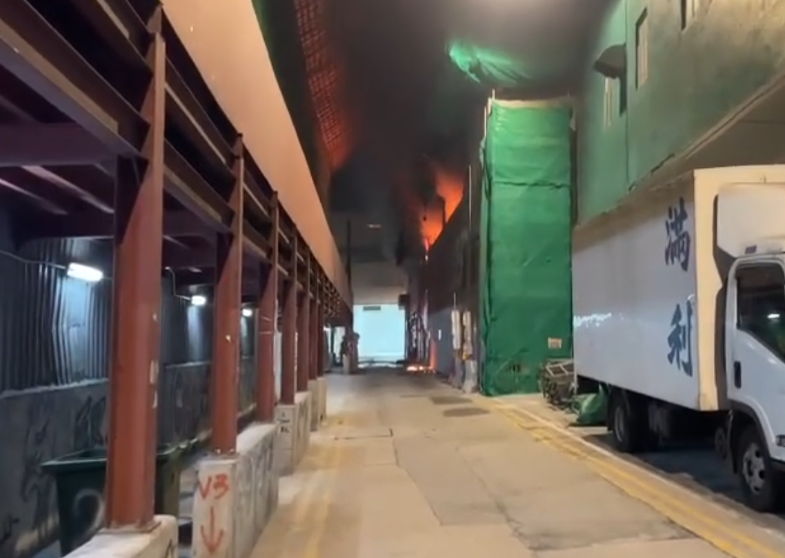 有網上片段拍得涉事地盤冒出火光,火勢不弱且勁大煙。