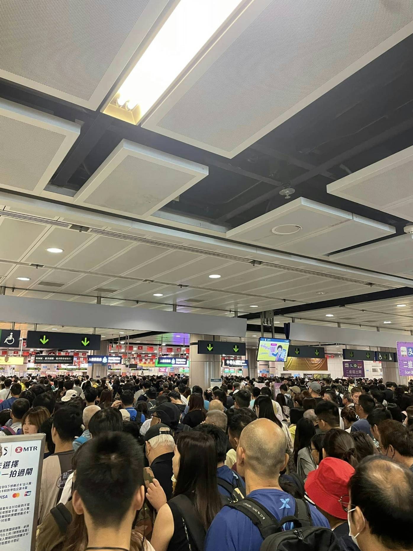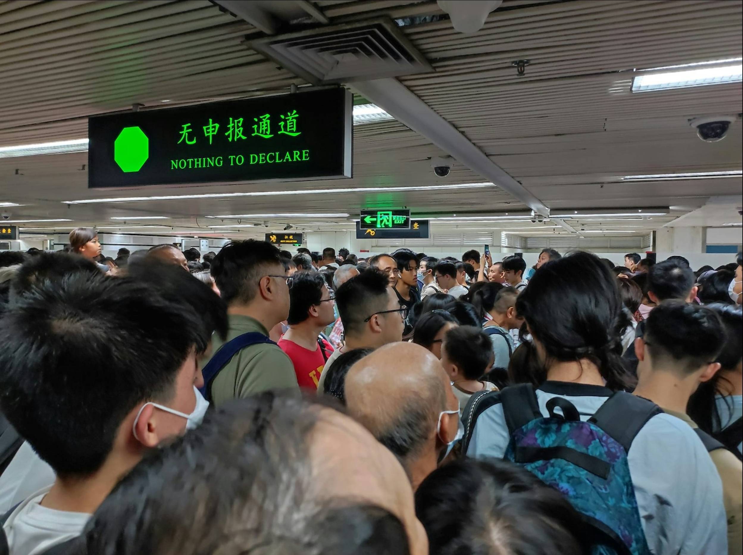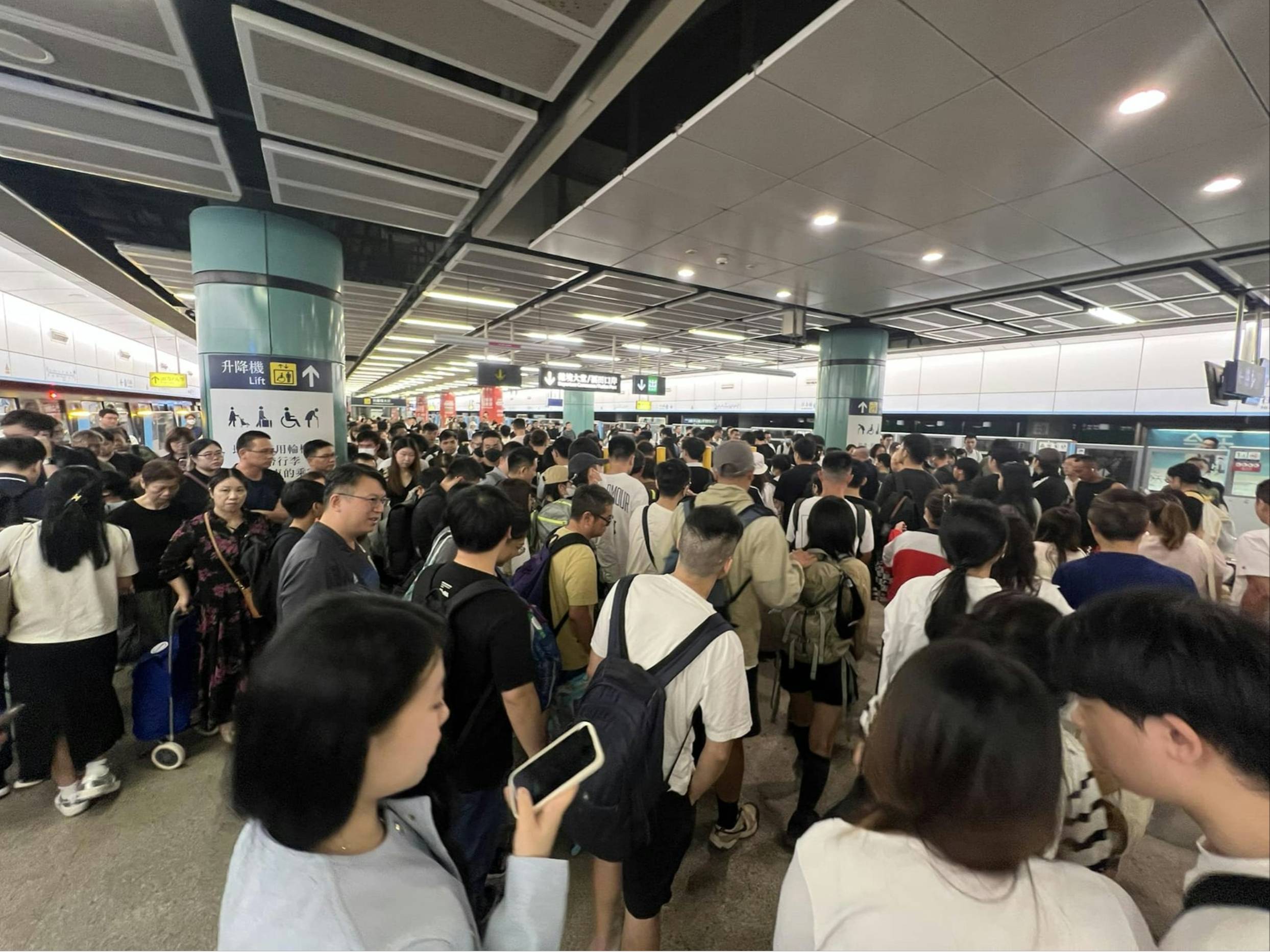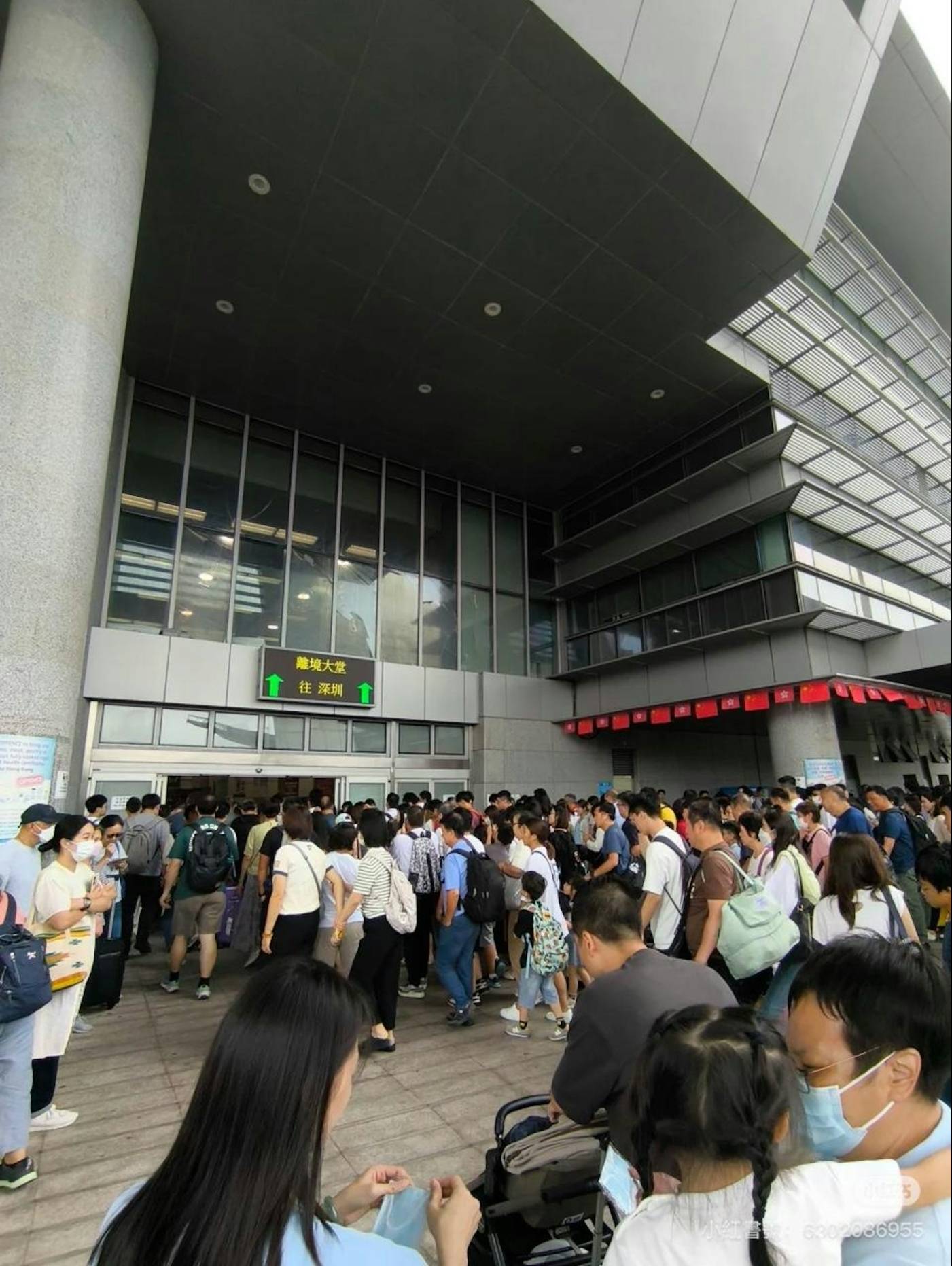 此外,Facebook群組昨晚起有不少港人上載圖片,顯示羅湖口岸迫滿過境人流,指出「羅湖口岸往深圳方向,迫爆上下二層,行李過機要排40分鐘,不要走下層通道,沒有空調」;至於港鐵落馬洲同樣塞滿北上港人,東鐵月台擠滿過境福田的乘客。