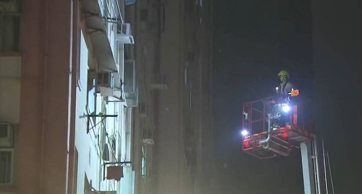 北角今天 (10月16日) 清晨時分有住宅走廊起火,期間消防員架起雲梯搜救,5名居民不適送院,約100人疏散。