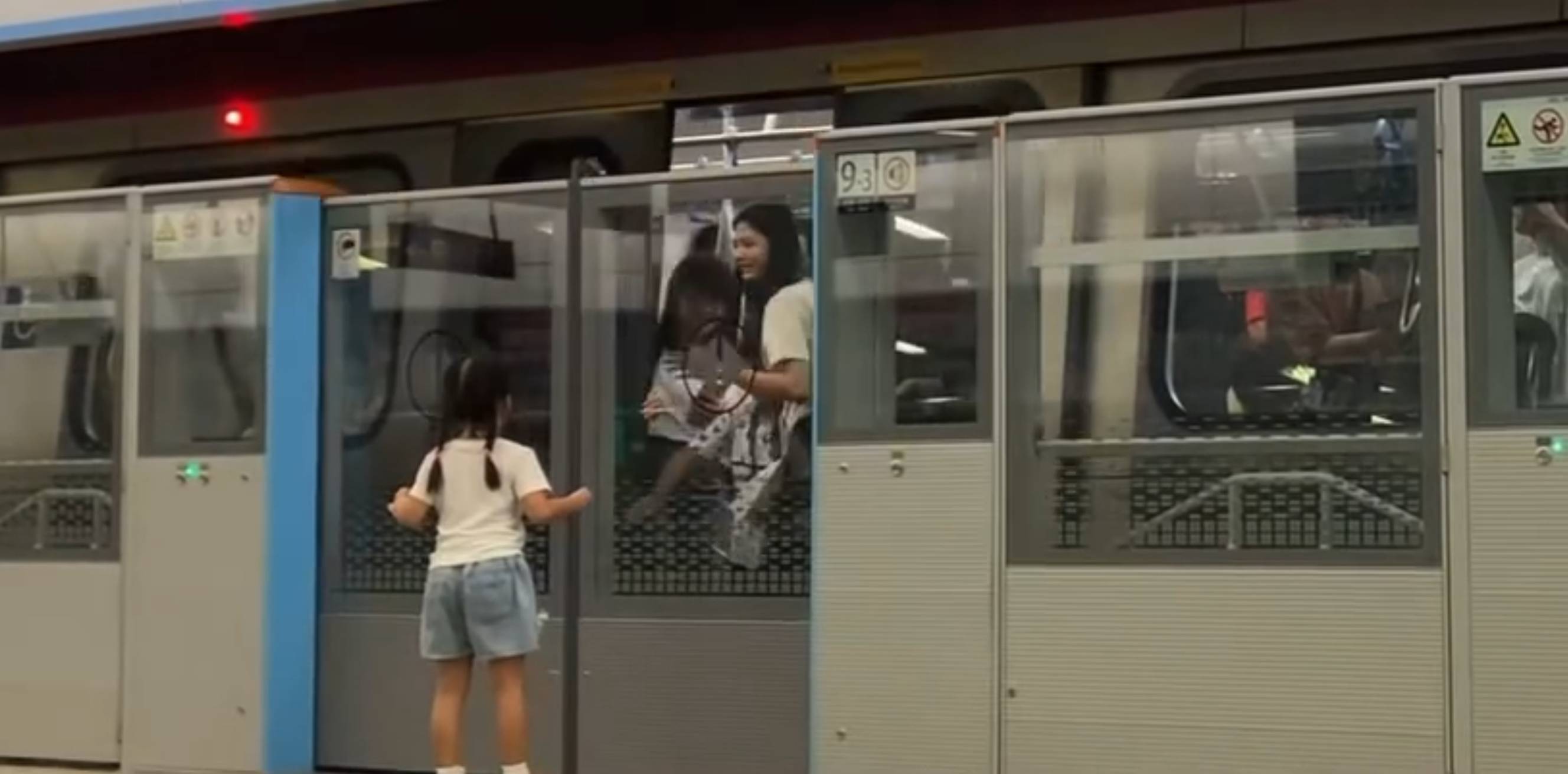 網上在周二 (10月22日) 流傳一段視頻,事發地點相信是落馬洲站往金鐘方向的港鐵列車,視頻中一名疑似母親帶著一名男童及一名女童乘坐港鐵,母親及男童分別先後成功進入港鐵車廂,但女童卻因月台幕門關閉而未能進入,女童母親見狀隨即用身體頂住車廂門令到車廂門不能功關上,女童在月台幕門外則顯得十分焦急,擔心得跳起來,後來因車門持續未能關上,港鐵男職員到該車廂檢視情況後,示意控制人員再次打開月台幕門及車廂門之後,女童隨即箭步跑入車廂,事件最終告一段落。