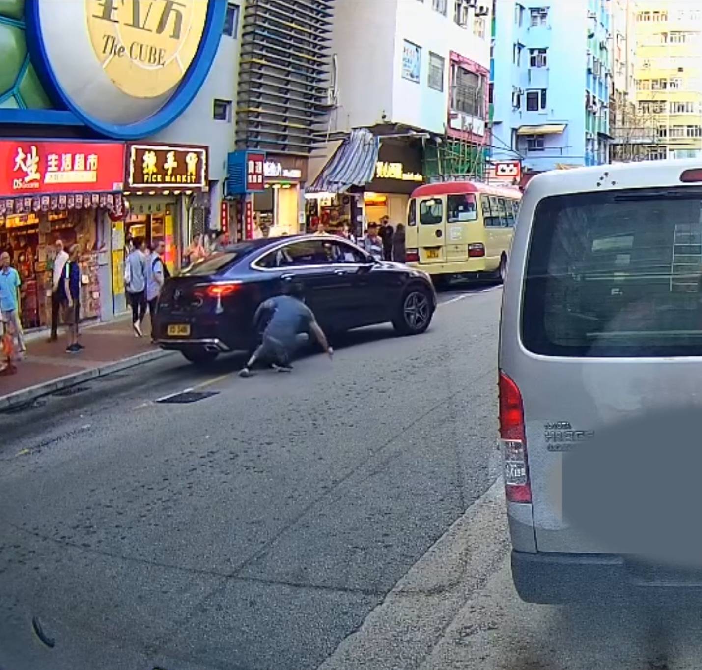 網上今日 (10月25日) 下午流傳一段廣泛視頻,視頻中一名身穿深藍色格仔衫的車主,正準備開走其停泊在路邊的深藍色私家車,與此同時一名身穿藍色上衣黑色牛仔褲的男子,從反方向走近該私家車,並且與該私家車司機說了幾句,當該輛私家車開走時,身穿藍色上衣黑色牛仔褲的男子突然跌倒在地上,即時出現「碰瓷」疑雲,當該私家車離開之後繼續在馬路上打滾,七情上面狀甚痛苦,嚇壞附近途人。