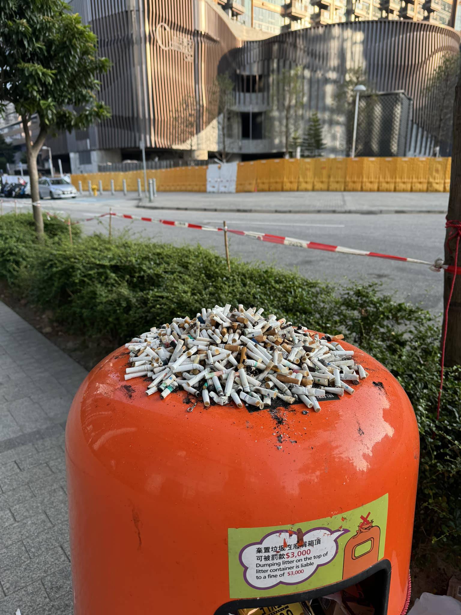 網上最新流傳一則帖文,帖文中附上一張相片,相片中顥示一個在放置在啟德路邊的公眾垃圾桶,有大量煙頭堆積在垃圾桶上面,「煙頭如山」的場面震憾網民!