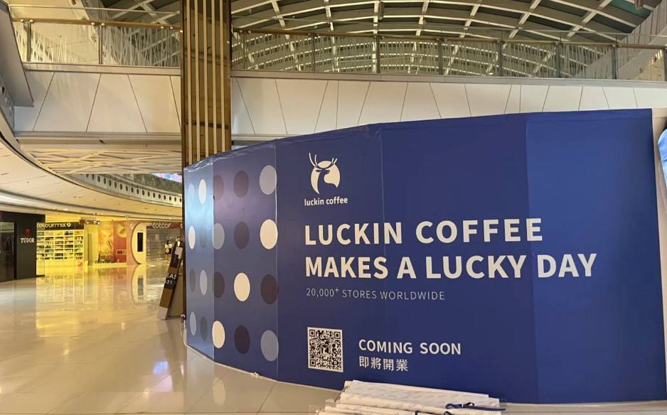 來自內地、曾於美國上市的內地咖啡店品牌「瑞幸咖啡」正式落戶香港,近日有網民發現瑞幸咖啡進駐尖沙咀美麗華廣場(Mira Place),鄰舖更是星巴克(Starbusks)。據網民照片發布可見,目前商場內已圍起寫有「luckin coffee」的圍板進行裝修,並寫有「即將開業」。