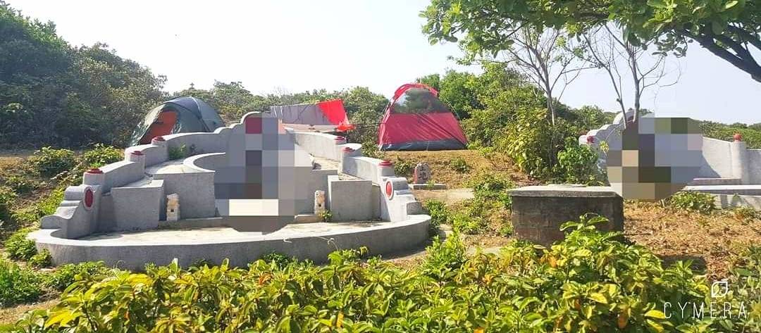 有網民在社交平台上發帖文,寫上「塔門奇景呀!呢種露營真係刺激」,並發布一張照片,照片可見是位於塔門山頭的草叢,當中有兩座山墳。不過,墳墓後面就有人開了兩個露營帳篷,目測帳篷與墳墓僅數步距離。
