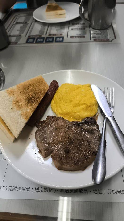 周三(11月6日)一名港女表示,她在上午7時許時進一間餐廳進食,並下單一份豬扒餐,惟出來的賣相令她不滿意,她說,「豬扒餐,$40,多謝晒」。在她發布的照片上,可見該份餐點內,有香腸、豬扒、滑蛋,也配上一塊牛油多士,惟香腸及豬扒則較焦黑。該名港女又說,「食咗兩啖,即刻搵水飲」。