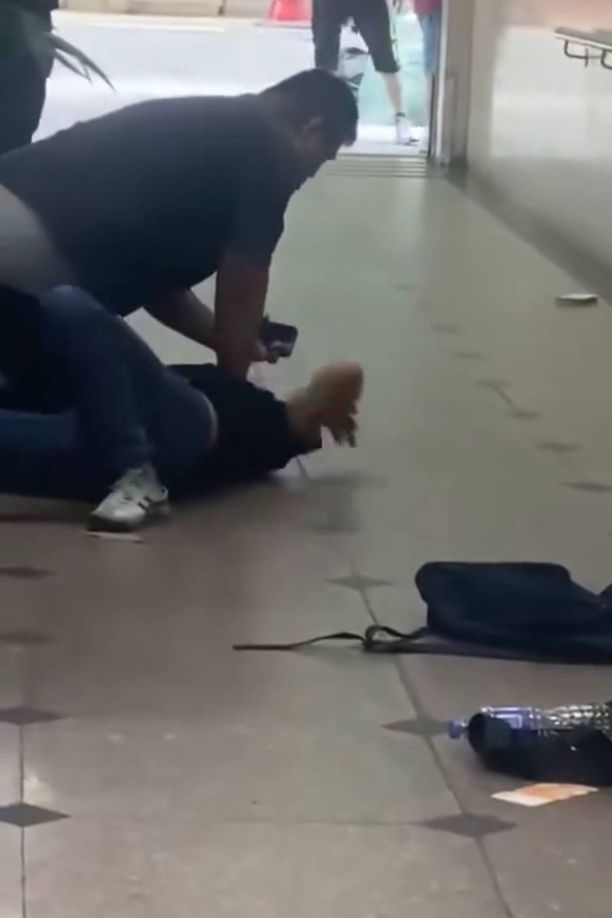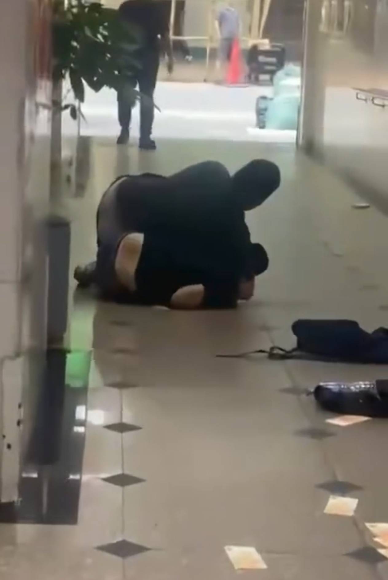 視頻顯示當時疑犯與事主糾纏在一起,千元「金牛」散落一地,地上還有有背包、眼鏡等物品,當時有保安員及街坊在場,圍觀者表示「你按住佢得啦」、「唔好打,報警,快d」、「報咗警」、「唔好走呀」等,事主則表示「唔好走」及「咪郁」,最終疑犯束手就摛,事主等待警員到場處理。