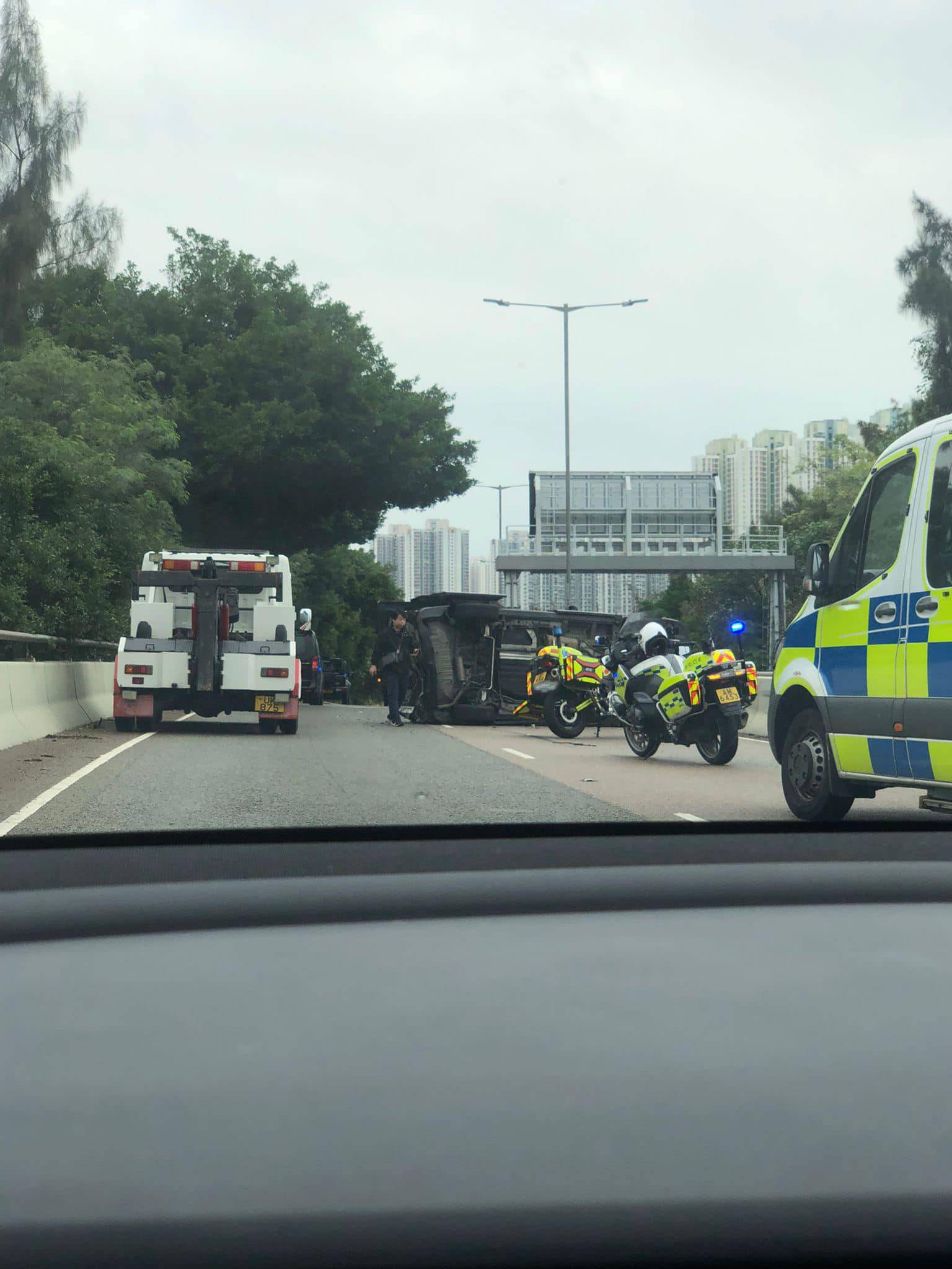 據現場消息指,前方清潔公司的貨車工人收雪糕筒時,懷疑太貼近車尾,後車被遮擋視線令後方司機難以察覺急停,最終釀成交通意外。