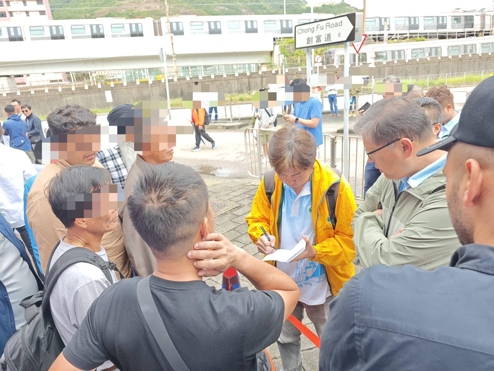 據現場照片所見,有勞工處、建築署及工會代表派員到場協調,而涉事的「精進」公司則態度強硬,拒絕與工人對話。