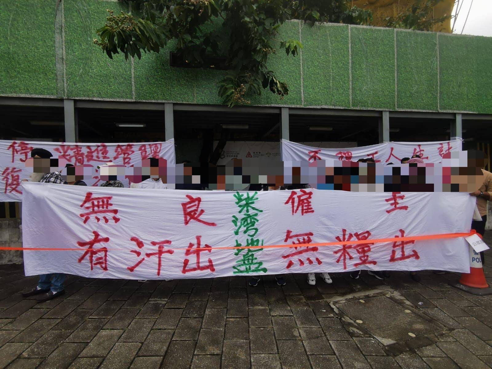 工程公司「精進」旗下地盤再爆欠薪風波,周二(11月19日)近200名二判工人到柴灣的水務署總部暨香港及離島分署及懲教署總部大樓地盤拉橫額及喊口號追薪。