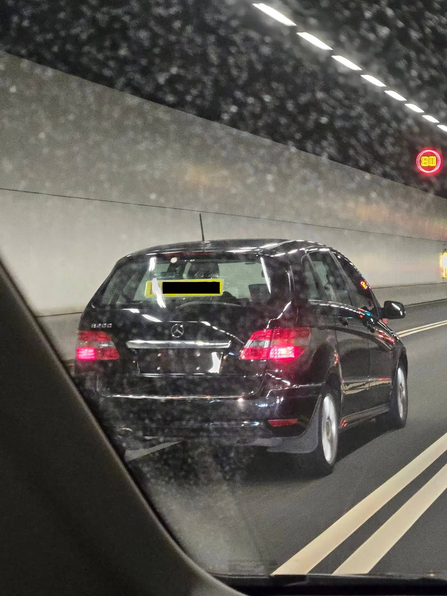 網上群組今天 (11月21日) 流傳一張相片,相片顯示一輛Benz正在香港的隧道內行駛,但車尾的車牌卻顯示在車尾的玻璃窗上,顯示位置明顯「與別不同」。