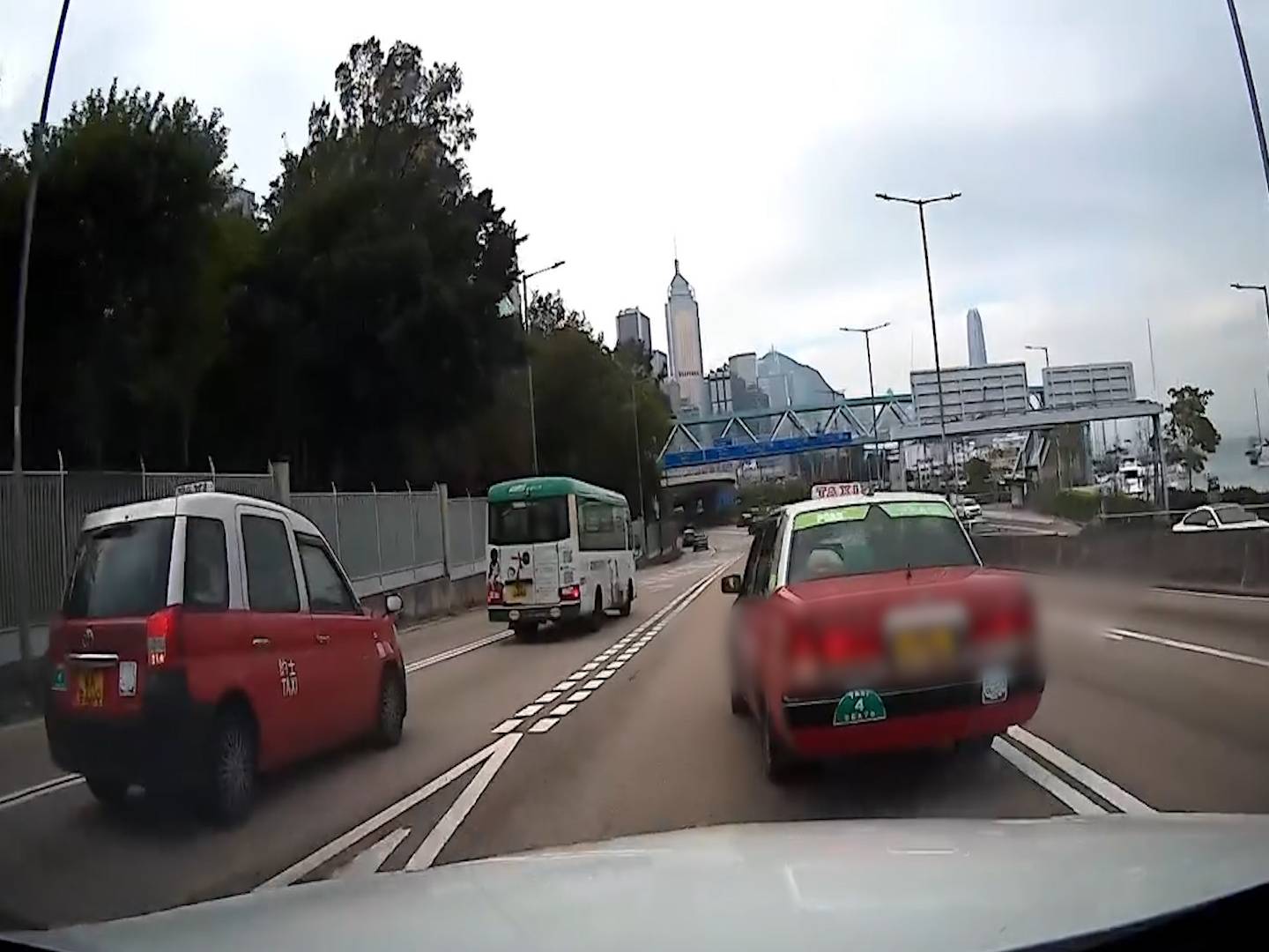 再有的士「亂Cut線」險導致交通意外發生!日前有車cam片段拍到,一輛的士在銅鑼灣沿維園道向灣仔方向行駛時,在未有打燈的情況下、超雙白線越線,令車主及一旁的綠Van緊急剎停,不過後續竟然超狂!