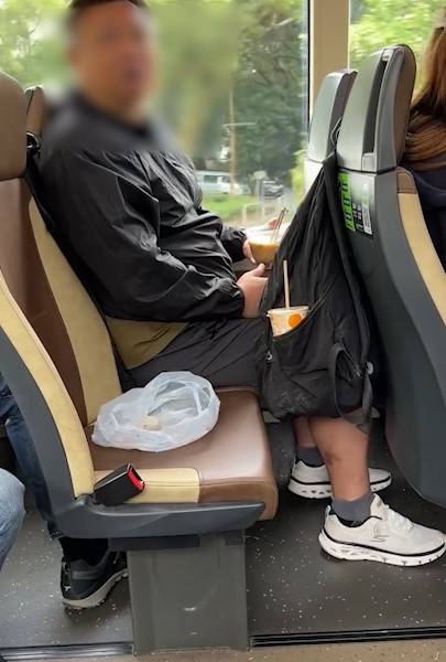 巴士車廂內一向不准飲食,但近日竟然有人公然進食,更是吃湯麵早餐!日前社交平台上流傳一段影片,可見一名男子在巴士車廂內進食,仔細看男子正食用湯麵外賣,完全無視其他乘客;他的旁邊掛有一個背包,裝着一標飲料,他亦佔用一旁邊的位置放置膠袋。