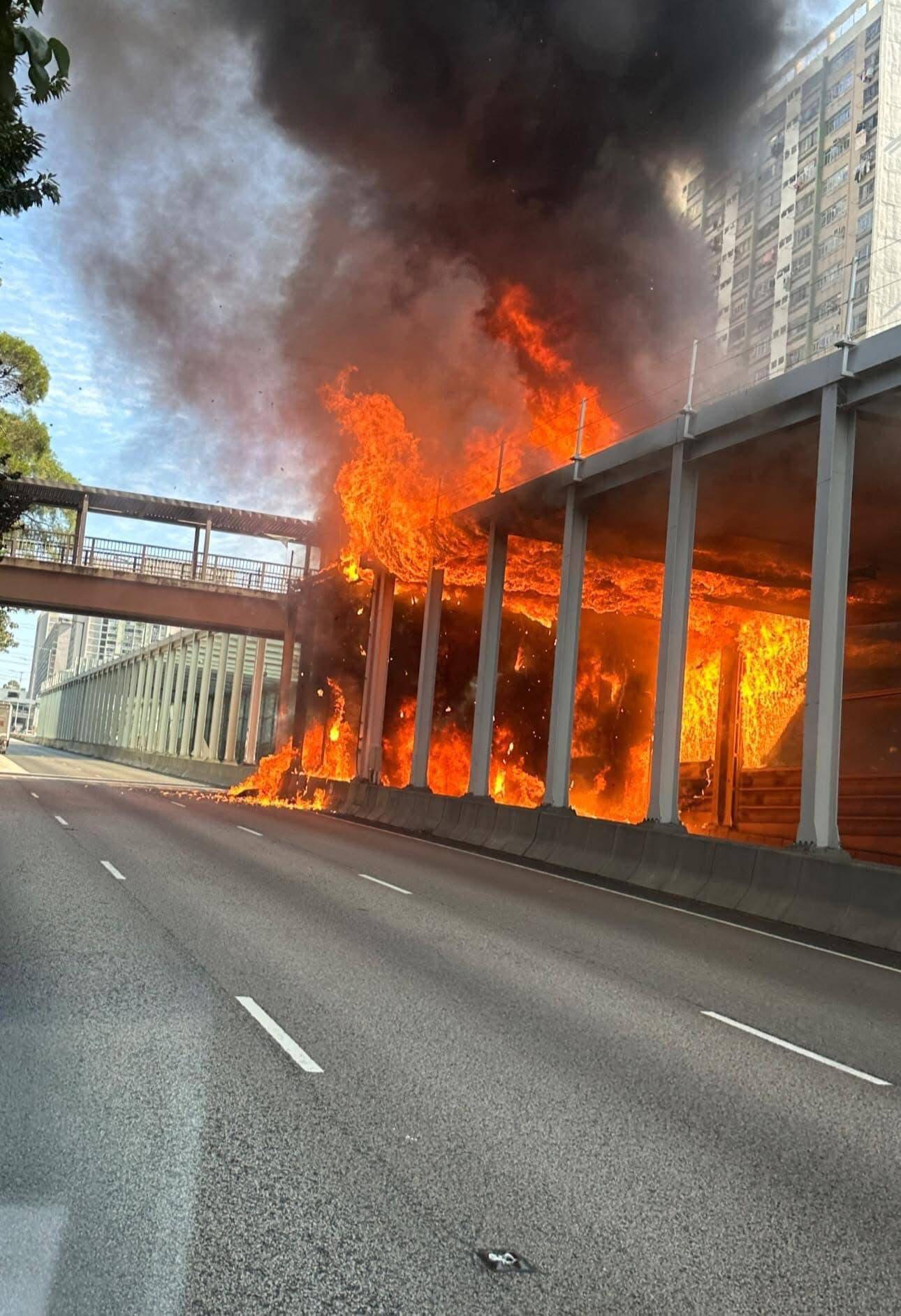 運輸署表示,受火警影響,城門隧道前往象鼻山路往荃灣方向暫時封閉。