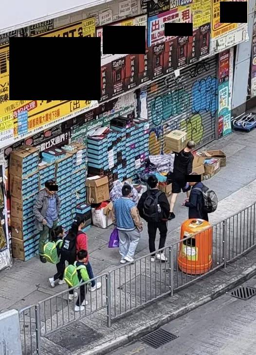 網上群組最新流傳一則帖文及一張圖片,帖主指出事發地點在彌敦道與旺角道交界的一段行人路上,相片中驚現不少鞋貨品,在「吉鋪」前方堆成高高的「鞋牆」,十分誇張,而且也造成阻街。