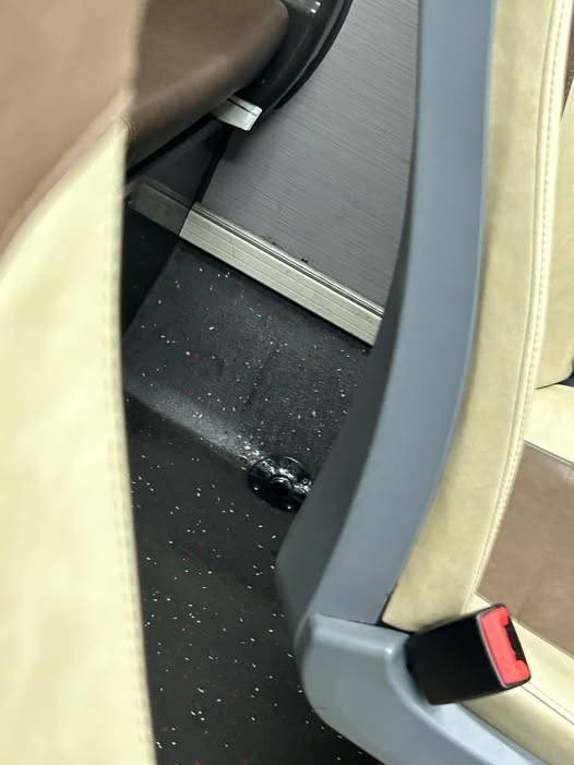 從相片中可見,巴士座位的地上明顯有被人弄濕痕跡。