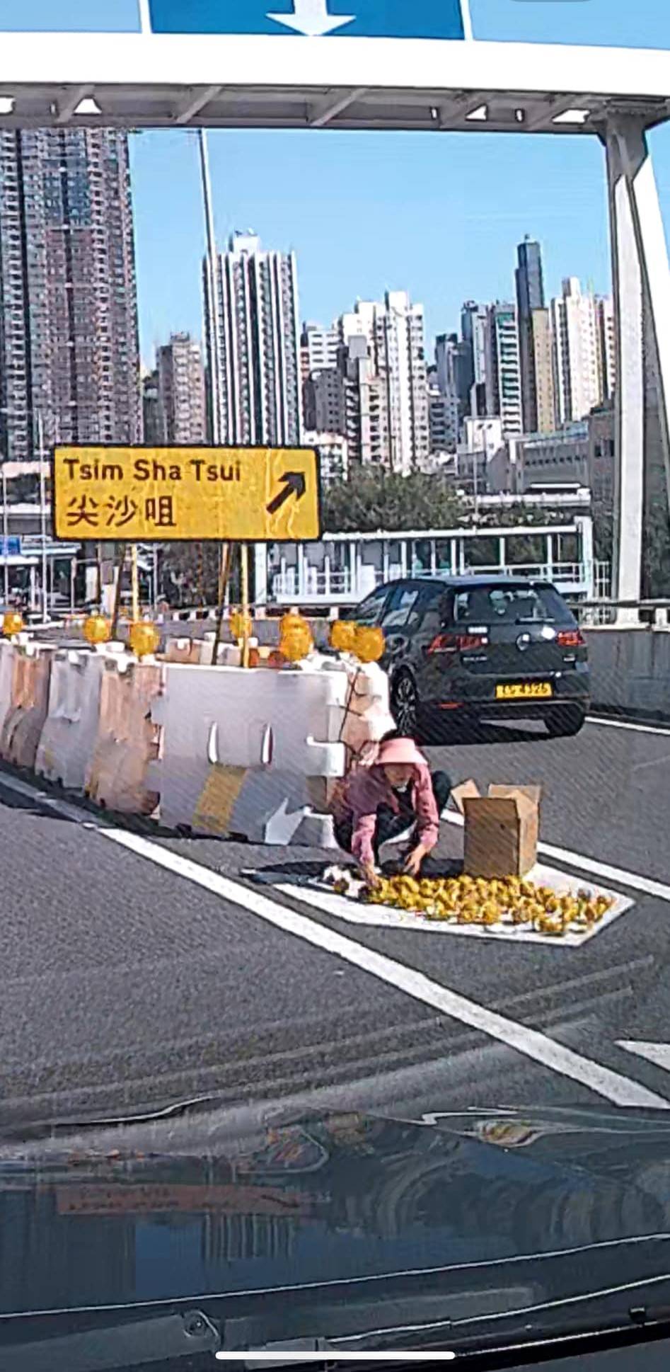 網上今天 (11月30日) 流傳一則帖文及一段車CAM視頻,視頻驚現一名大媽正在往油麻地及尖沙咀方向的行車天橋狹小影線上晾晒「亡命果皮」。