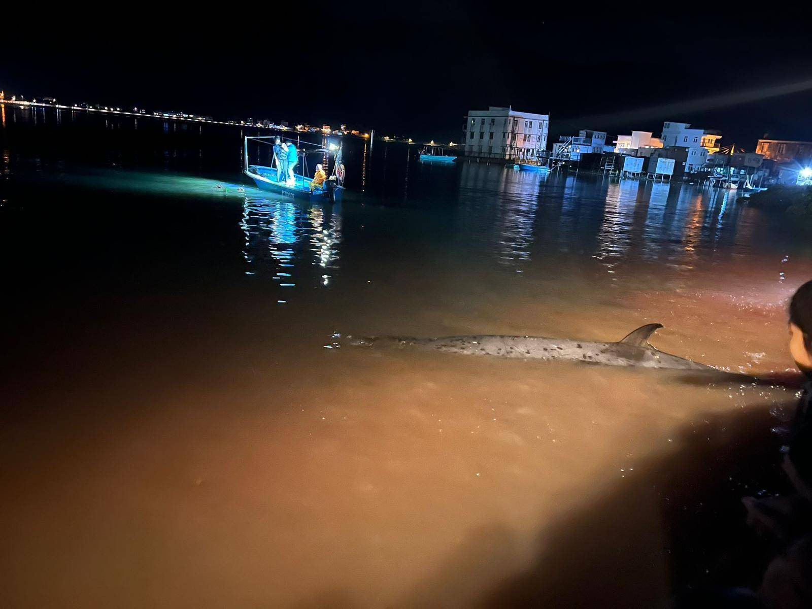 漁護署表示,昨日下午接獲警方報告,在大嶼山二澳水域,發現有活體鯨豚擱淺。至入夜,漁護署及海洋公園保育基金人員,在大澳水域發現擱淺的鯨魚,初步評估牠身長約5至6米,身上有傷口。獸醫初步評估,認為鯨魚已經受傷,當為鯨魚進行麻醉,進一步診斷時,發現鯨魚身體狀況非常虛弱,期間鯨魚死亡,死亡時間約為凌晨0時。而在清晨5時許,裝有吊臂的船隻將鯨魚屍體運抵大欖水警基地,移送上岸。