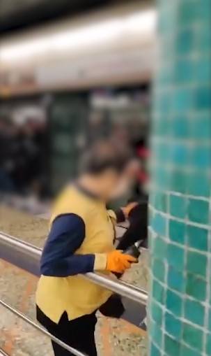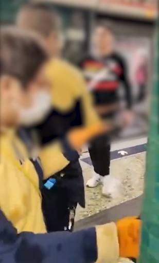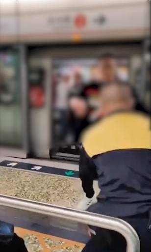 港鐵深水埗站日前發生一宗「港鐵MMA」事件!周二(12月10日)網上流傳一段影片,一名戴眼鏡、手持一樽可樂的男子,遊走車廂和月台之間,其後更「起飛腳」接連踢向兩名手持對講機的男女職員,一名短髮女職員遭踢中左腹,右邊身體撞到欄杆,當場慘叫;乘客見狀則四散。
