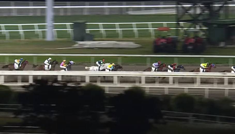 周三(12月18日)沙田夜馬賽事有騎師墮馬。昨晚夜馬賽事第7場1200米泥地賽中,4號馬「勝意龍」跑至中段約650米時步履突然揚蹄墮後倒地,策騎的34歲本地騎師何澤堯墮馬,其後救護車將其送院治理。